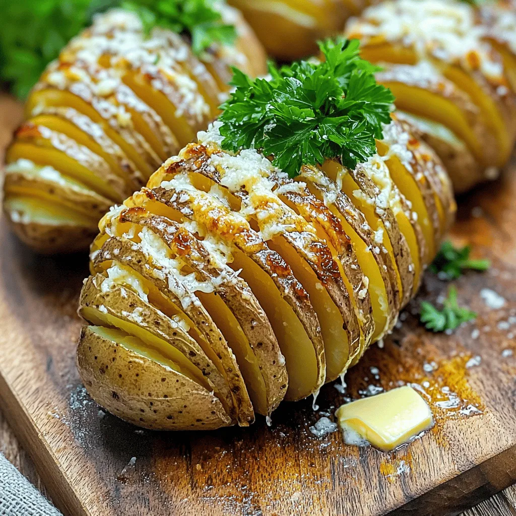 – Nach dem Garen nimm die Kartoffeln heraus und lasse sie kurz abkühlen. Garniere die Hasselback-Kartoffeln mit fein gehackter Petersilie.