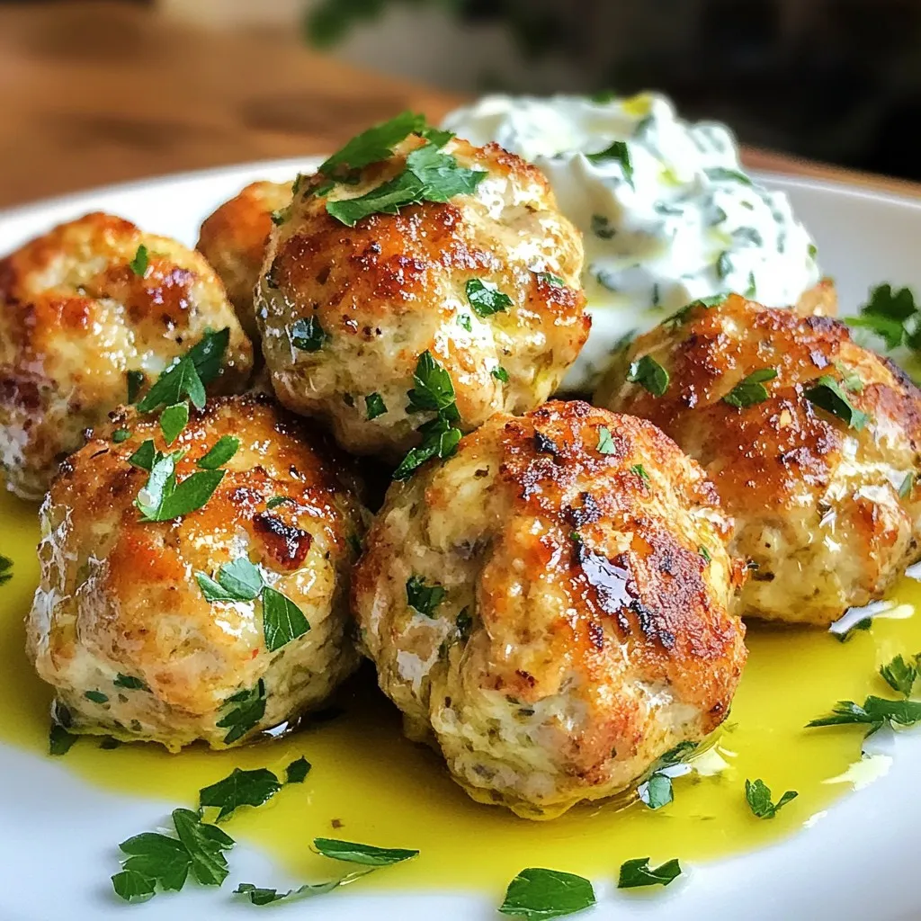Saftige und aromatische griechische Hähnchenfleischbällchen, perfekt zum Servieren mit Tzatziki.