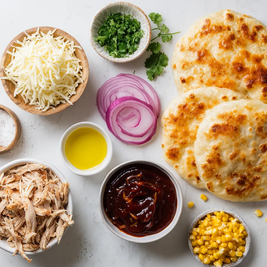 Ich liebe die Kombination dieser Zutaten. Fladenbrote sind die perfekte Basis. Sie sind dünn und knusprig. Gekochtes Rotisserie-Hühnchen macht die Zubereitung schnell und einfach. Die BBQ-Sauce fügt einen süßen und rauchigen Geschmack hinzu.