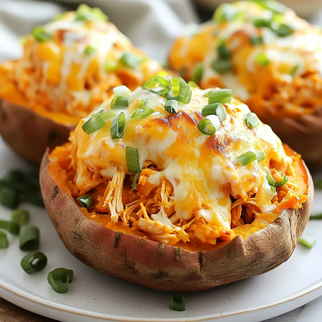 Entdecken Sie unser köstliches Rezept für Buffalo Chicken Süßkartoffeln! Diese gefüllten Süßkartoffeln bieten die perfekte Mischung aus scharfen Aromen und cremiger Käsefüllung. Verwenden Sie zerkleinertes Hähnchen, Buffalo-Sauce und Cheddar für ein unvergleichliches Geschmackserlebnis. Ideal für ein schnelles Abendessen oder als Snack. Probieren Sie es aus und bringen Sie Schwung in Ihre Küche! #BuffaloChickenSüßkartoffeln #SüßkartoffelnRezept #BuffaloSaucenSüßkartoffeln #scharfeSüßkartoffelnMitHähnchen