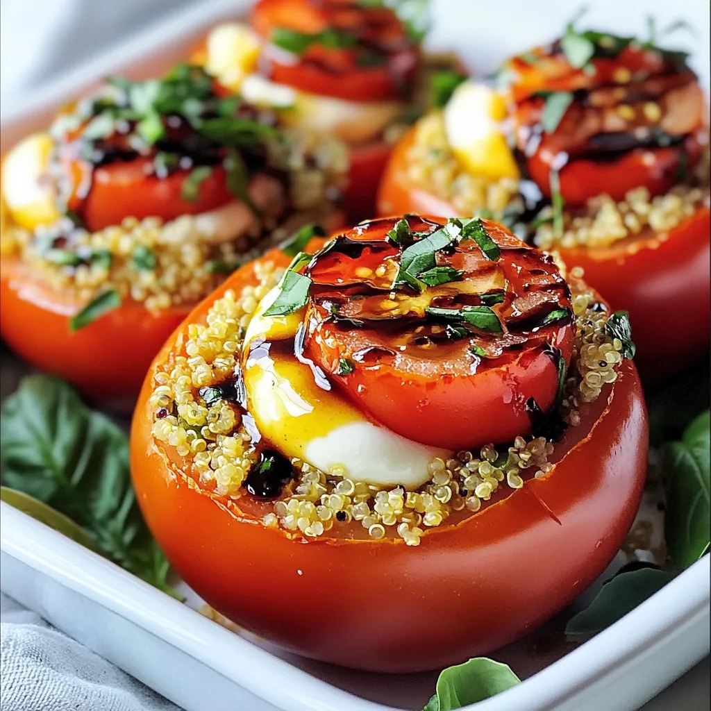 Entdecke das einfache und gesunde Rezept für Caprese Quinoa Stuffed Tomatoes! Diese gefüllten Tomaten sind nicht nur lecker, sondern auch vollgepackt mit frischen Zutaten. Du brauchst nur wenige Hauptzutaten wie Quinoa, Tomaten und Mozzarella. In nur wenigen Schritten bereitest du ein köstliches Gericht, das perfekt zum Teilen ist. Lass uns gleich loslegen und deine Küche mit diesem attraktiven Rezept füllen!