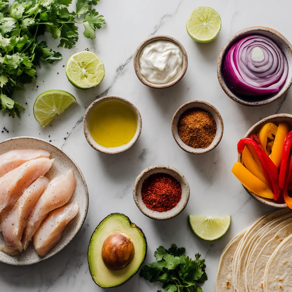 Die Hauptzutaten machen die Fajitas lecker und nahrhaft. Hier ist, was du brauchst: - 450 g Hähnchenbrust, in dünne Streifen geschnitten - 1 rote Paprika, in Streifen geschnitten - 1 gelbe Paprika, in Streifen geschnitten - 1 rote Zwiebel, in Scheiben geschnitten - 4-6 Tortillas aus Weizenmehl Diese Zutaten geben den Fajitas ihren tollen Geschmack. Frisches Gemüse sorgt für einen knackigen Biss. Für die Marinade brauchst du: - 2 Esslöffel Olivenöl - 2 Esslöffel Chipotle-Chilipulver - 1 Teelöffel Kreuzkümmel - 1 Teelöffel geräuchertes Paprikapulver - Saft von 1 Limette - Salz und Pfeffer nach Geschmack Diese Gewürze bringen die Fajitas auf das nächste Level. Der Chipotle-Chilipulver gibt einen rauchigen Kick. Der Limettensaft fügt Frische hinzu. Um die Fajitas zu vervollständigen, empfehle ich folgende Beilagen: - Frischer Koriander, zur Garnierung - Avocadoscheiben, zum Servieren - Sauerrahm, zum Servieren Diese Beilagen machen das Gericht noch besser. Der Koriander bringt einen frischen Geschmack. Die Avocados sind cremig und lecker. Sauerrahm rundet das Ganze ab und macht es noch schmackhafter. {{ingredient_image_2}} Beginne mit 450 g Hähnchenbrust. Schneide sie in dünne Streifen. Nimm eine große Schüssel und gib das Hähnchen hinein. Füge 2 Esslöffel Olivenöl hinzu. Streue 2 Esslöffel Chipotle-Chilipulver, 1 Teelöffel Kreuzkümmel und 1 Teelöffel geräuchertes Paprikapulver dazu. Press den Saft von 1 Limette hinein. Würze mit Salz und Pfeffer. Vermische alles gut, bis das Hähnchen gleichmäßig bedeckt ist. Decke die Schüssel ab. Lasse das Hähnchen mindestens 30 Minuten im Kühlschrank marinieren. So kann der Geschmack einziehen. Erhitze eine große Pfanne bei mittlerer bis hoher Hitze. Nimm das marinierte Hähnchen aus dem Kühlschrank. Gib das Hähnchen in die heiße Pfanne. Brate es 5-7 Minuten lang, bis es goldbraun ist. Rühre gelegentlich um, damit es gleichmäßig gart. Überprüfe, ob das Hähnchen durchgegart ist. Sobald das Hähnchen gar ist, füge 1 rote und 1 gelbe Paprika hinzu. Schneide sie in Streifen. Schneide auch 1 rote Zwiebel in Scheiben. Gib das Gemüse in die Pfanne. Brate alles weitere 3-5 Minuten an. Rühre gut um, bis das Gemüse weich, aber noch knackig ist. Nimm die Pfanne vom Herd und schmecke die Mischung ab. Gegebenenfalls nachwürzen. Um die Fajitas richtig zu würzen, benutze ich Chipotle-Chilipulver. Es gibt den Fajitas den rauchigen Geschmack, den sie brauchen. Mixe das Hähnchen mit Olivenöl, Kreuzkümmel und geräuchertem Paprikapulver. So wird das Hähnchen zart und voller Geschmack. Lass das Hähnchen mindestens 30 Minuten marinieren. So ziehen die Aromen ein. Wenn du mehr Schärfe magst, füge mehr Chilipulver hinzu. Für die besten Fajitas empfehle ich Weizentortillas. Sie sind weich und halten die Füllung gut. Wärme die Tortillas in einer Pfanne oder Mikrowelle vor. So werden sie schön warm und geschmeidig. Du kannst auch Vollkorn- oder Mais-Tortillas verwenden. Probiere verschiedene Sorten aus, um deinen Favoriten zu finden. Um die Zubereitung zu beschleunigen, schneide das Gemüse und das Hähnchen vorher. Bereite alles vor, bevor du anfängst zu kochen. Du kannst auch das Hähnchen am Abend zuvor marinieren. So sparst du Zeit am Kochtag. Halte alle Zutaten bereit, um schnell arbeiten zu können. So wird das Kochen stressfrei und macht Spaß. Pro Tipps Marinieren für mehr Geschmack: Lassen Sie das Hähnchen mindestens 30 Minuten marinieren, um die Aromen optimal aufzunehmen. Je länger, desto besser! Gemüse perfekt zubereiten: Achten Sie darauf, das Gemüse nur kurz anzubraten, damit es knackig bleibt und nicht zu weich wird. Tortillas richtig erwärmen: Erwärmen Sie die Tortillas in einer trockenen Pfanne oder in der Mikrowelle, um sie geschmeidig und warm zu halten, bevor Sie die Füllung hinzufügen. Frische Garnitur: Garnieren Sie Ihre Fajitas mit frischem Koriander und Avocadoscheiben für zusätzlichen Geschmack und eine ansprechende Präsentation. {{image_4}} Du kannst die Fajitas leicht vegetarisch machen. Ersetze das Hähnchen durch Tofu oder Seitan. Schneide sie in Streifen und mariniere sie wie das Hähnchen. Du kannst auch Kichererbsen oder schwarze Bohnen verwenden. Diese Zutaten geben einen tollen Geschmack und eine gute Textur. Füge zusätzliches Gemüse wie Zucchini oder Pilze hinzu, um mehr Abwechslung zu schaffen. Wenn du kein Hähnchen magst, probiere Rindfleisch oder Garnelen. Rindfleisch sollte dünn geschnitten werden. Marinieren sie wie das Hähnchen. Garnelen brauchen nur kurze Zeit zum Kochen. Du kannst auch Fisch verwenden. Wähle einen festen Fisch wie Kabeljau oder Tilapia. Diese Optionen bieten verschiedene Geschmäcker und machen die Fajitas spannend. Die Gewürze sind wichtig für den Geschmack. Du kannst mit den Gewürzen spielen. Wenn du es schärfer magst, füge mehr Chipotle-Chilipulver hinzu. Für mehr Frische kannst du frische Limettenschale verwenden. Probiere auch andere Kräuter wie Oregano oder Thymian. Sie geben den Fajitas einen neuen Twist. Denk daran, die Gewürze anzupassen, je nach deinen Vorlieben. Um die Reste der Chipotle Lime Chicken Fajitas frisch zu halten, lege sie in einen luftdichten Behälter. Achte darauf, dass die Fajitas vollständig abgekühlt sind, bevor du sie lagerst. Das verhindert Kondenswasser und hält die Tortillas weich. Du kannst die Fajitas auch in einzelne Portionen aufteilen. So sind sie später einfacher zu genießen. Beim Wiedererwärmen der Fajitas benutze eine Pfanne für den besten Geschmack. Erhitze die Fajitas bei mittlerer Hitze. Füge einen Spritzer Wasser hinzu, um die Tortillas weich zu halten. Du kannst sie auch in der Mikrowelle erwärmen. Lege sie auf einen Teller und decke sie mit einem feuchten Papiertuch ab. Erwärme sie in 30-Sekunden-Intervallen, bis sie warm sind. Die Fajitas halten sich im Kühlschrank etwa 3 bis 4 Tage. Achte darauf, sie gut verpackt zu lagern. Wenn du die Fajitas länger aufbewahren möchtest,