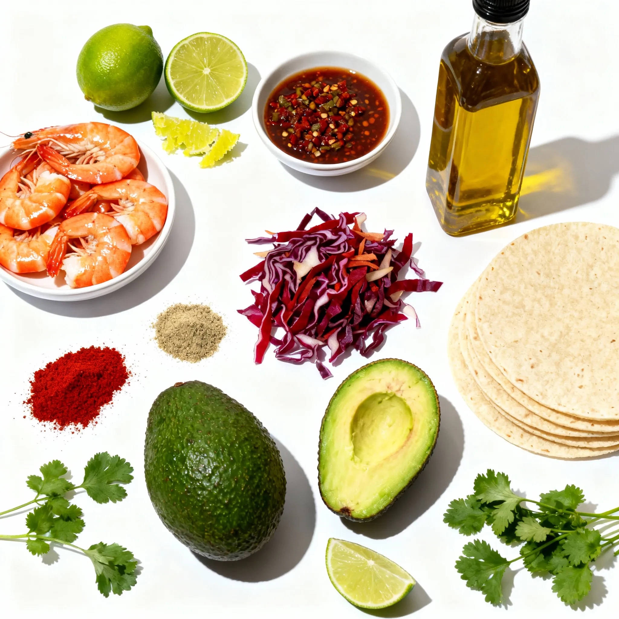 Hauptzutaten für Chipotle-Limetten-Garnelen-Tacos