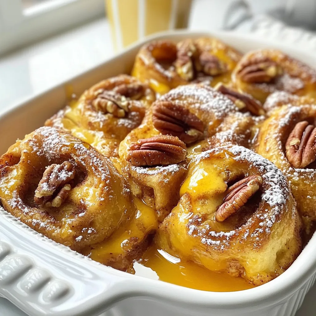 Ein köstlicher Auflauf aus Zimtschnecken, perfekt für ein Frühstück oder Brunch.