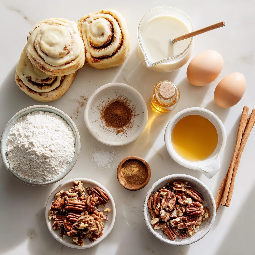 Die Hauptzutaten sind einfach zu finden. Wenn du keine Zimtschnecken hast, kannst du auch Croissants verwenden. Statt normaler Milch kannst du Mandel- oder Hafermilch nutzen. So passt das Rezept zu deinen Vorlieben.