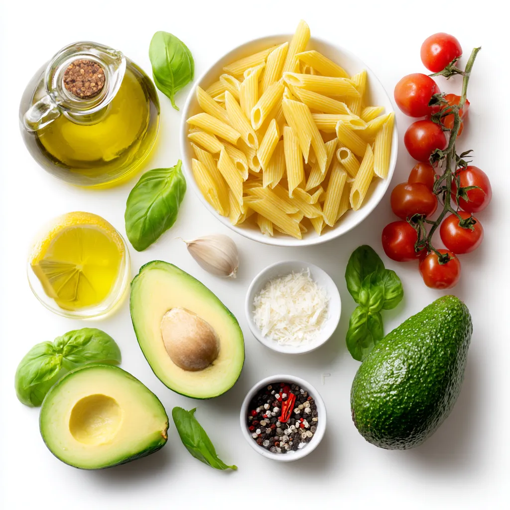 Hauptzutaten für die cremige Avocado-Pasta