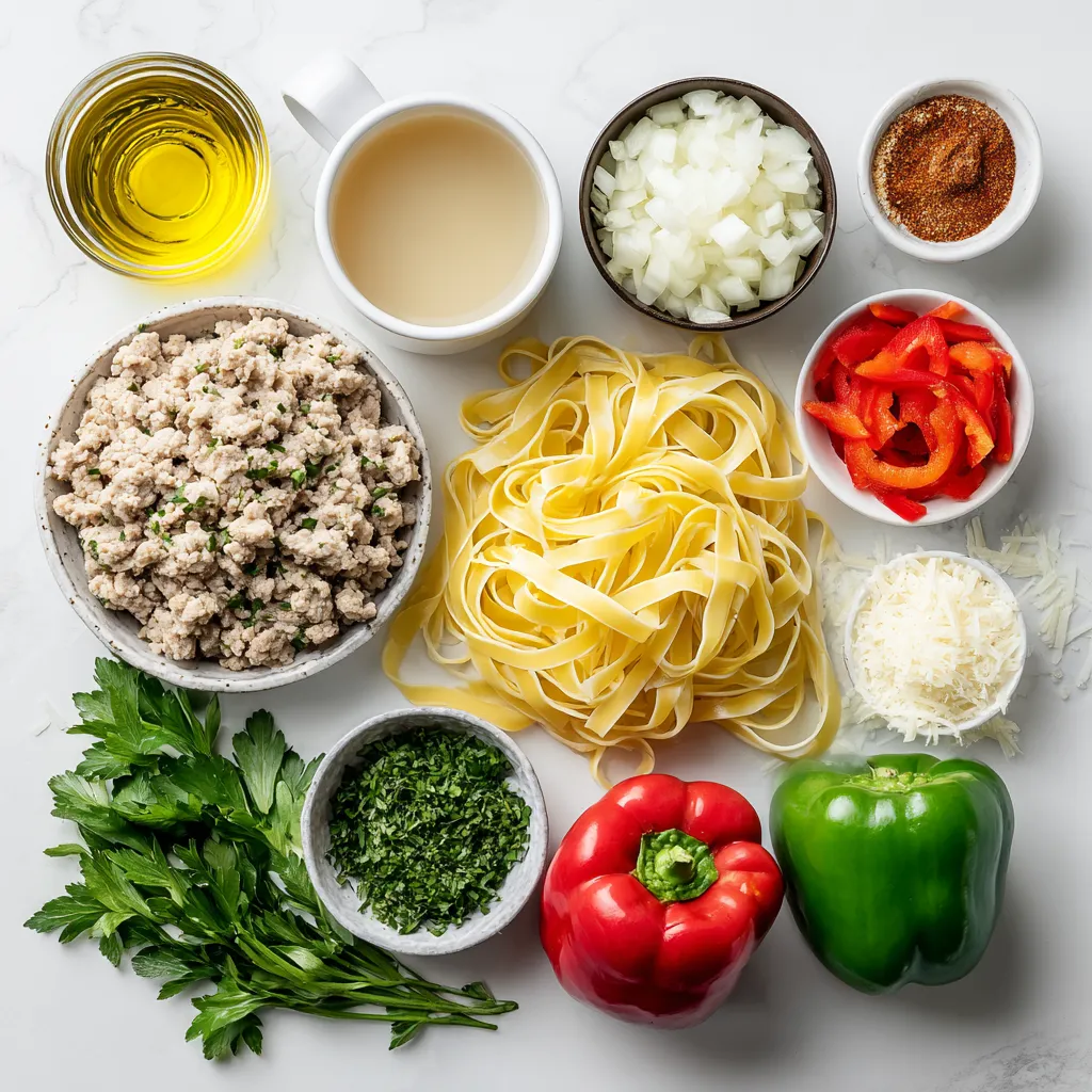 Die Zutaten für die cremige Cajun-Türkey-Pasta sind einfach zu finden. Fangen wir mit der Pasta an. Fettuccine ist perfekt, da sie die Soße gut aufnimmt. Das gemahlene Truthahnfleisch gibt dem Gericht einen tollen Geschmack und macht es sättigend.