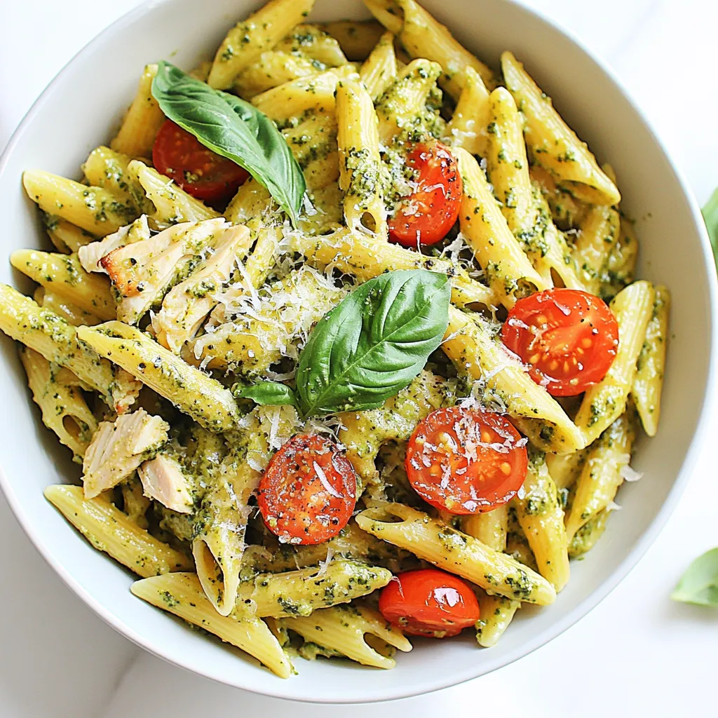 In diesem Rezept kommen einfache und frische Zutaten zusammen. Die Penne-Nudeln bilden die Basis und sind leicht zu kochen. Ich benutze gekochte Hähnchenbrust, um Zeit zu sparen und um sicherzustellen, dass das Gericht schnell fertig ist. Das Basilikum-Pesto bringt einen tollen Geschmack.
