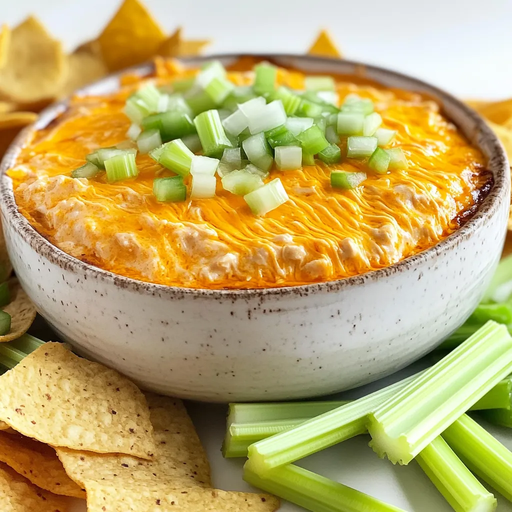 Jetzt ist dein cremiger Buffalo Chicken Dip bereit zum Servieren!