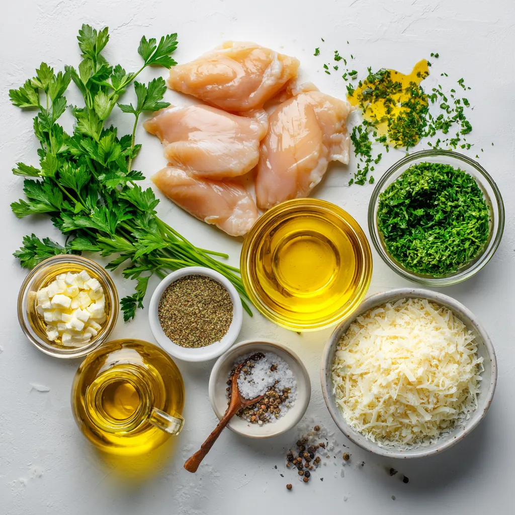Hauptzutaten für cremiges Knoblauch-Parmesan-Hühnchen
