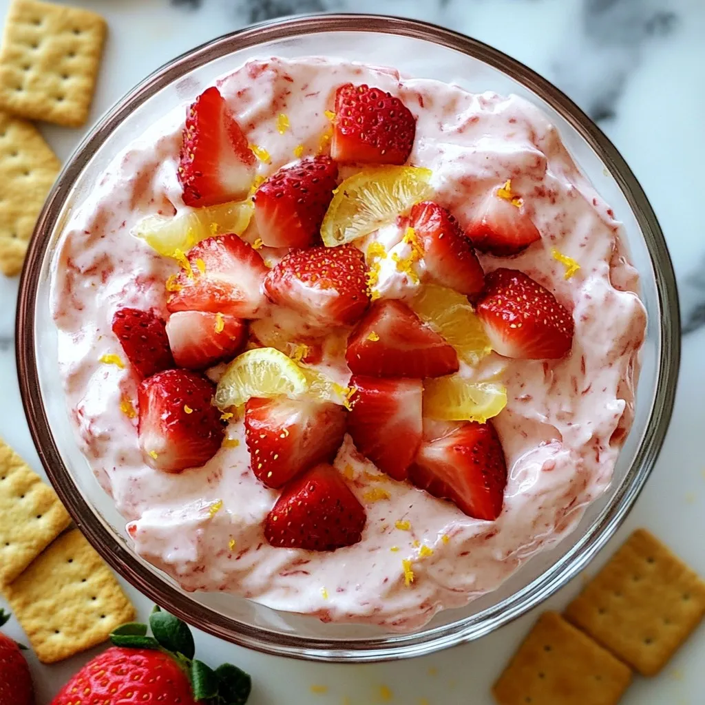 Ein cremiger und fruchtiger Dip mit Erdbeeren und Zitronen, perfekt zum Dippen.