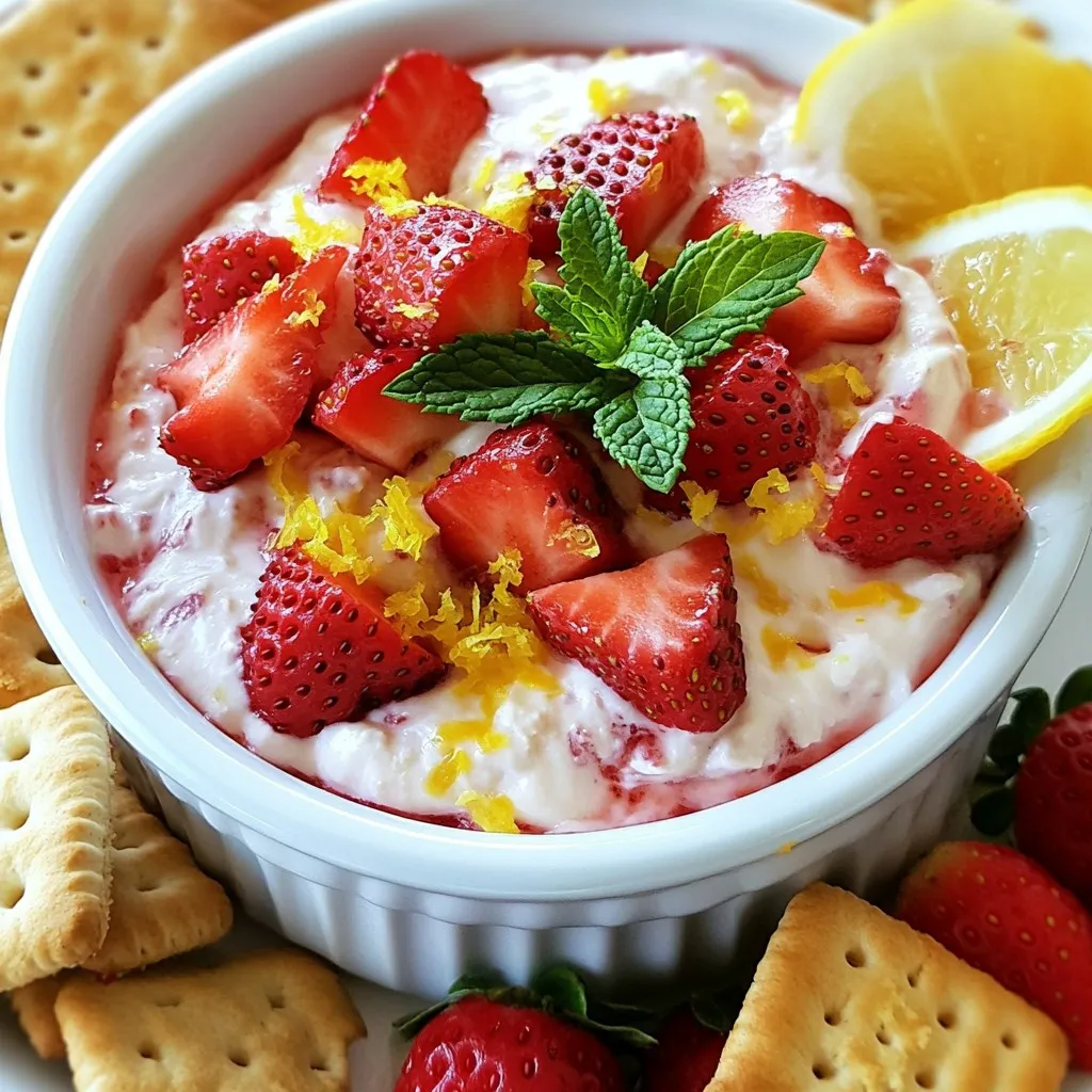 Ein cremiger Dip mit frischen Erdbeeren und Zitronen, perfekt zum Eintauchen.
