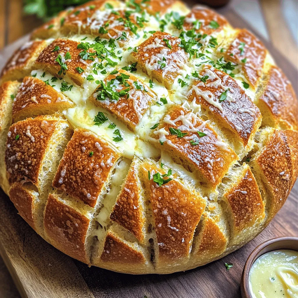Um das Brot einfacher zu schneiden, lassen Sie es etwas abkühlen. Verwenden Sie ein gezahntes Messer, um die Stücke sauber zu schneiden. Servieren Sie das Zupfbrot auf einem rustikalen Holzbrett. Stellen Sie ein kleines Schälchen mit geschmolzener Knoblauchbutter zum Dippen bereit. Das macht das Essen noch besser und sieht einladend aus!