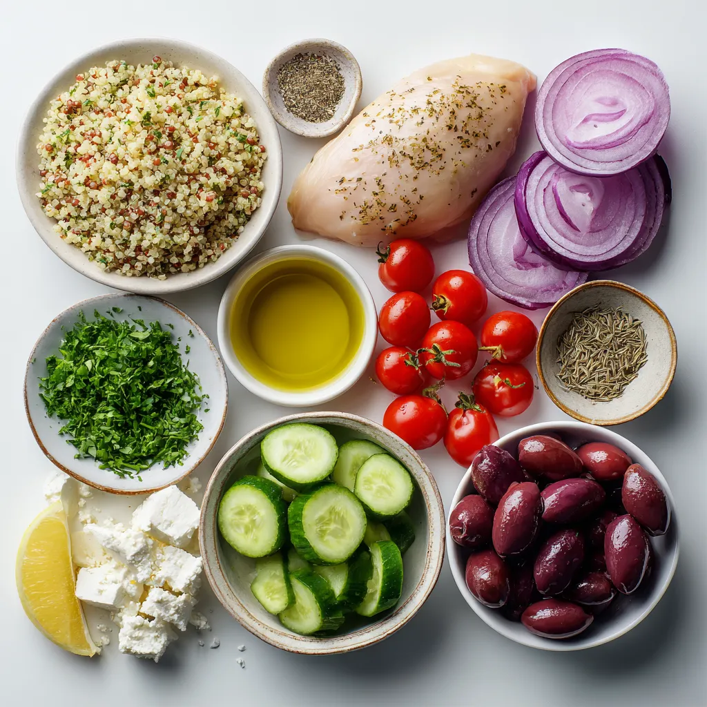 Hauptzutaten für Griechische Hähnchen-Power-Bowls
