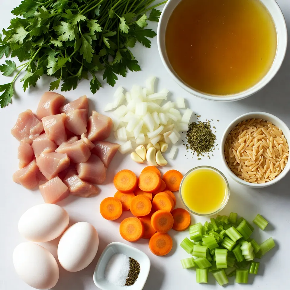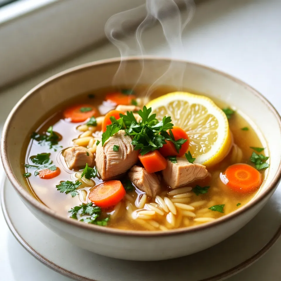 Eine erfrischende und herzhafte Suppe mit Hühnerbrust, Orzo und Zitronensaft.