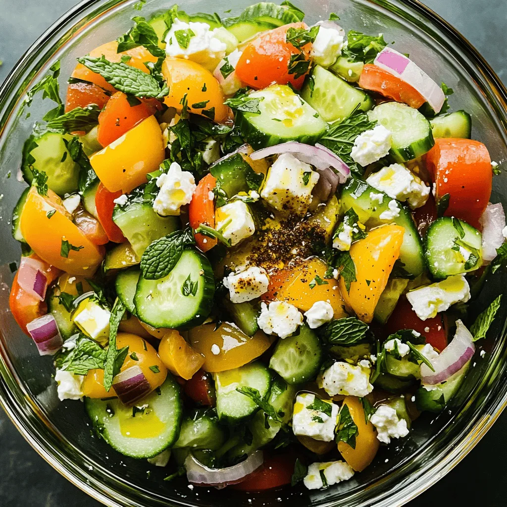 Entdecken Sie das erfrischende Rezept für Crispy Gurken-Tomaten-Feta-Delight, das in nur 15 Minuten zubereitet ist! Mit saftigen Gurken, reifen Tomaten, cremigem Fetakäse und frischen Kräutern ist dieser Salat nicht nur gesund, sondern auch unglaublich lecker. Perfekt als Beilage oder leichte Mahlzeit. Klicken Sie durch, um die Schritt-für-Schritt-Anleitung zu entdecken und Ihre Gäste zu beeindrucken!