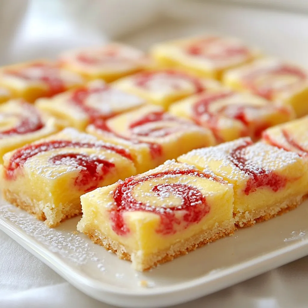 Leckere Bars mit einer Kombination aus frischen Himbeeren und Zitronenfüllung.