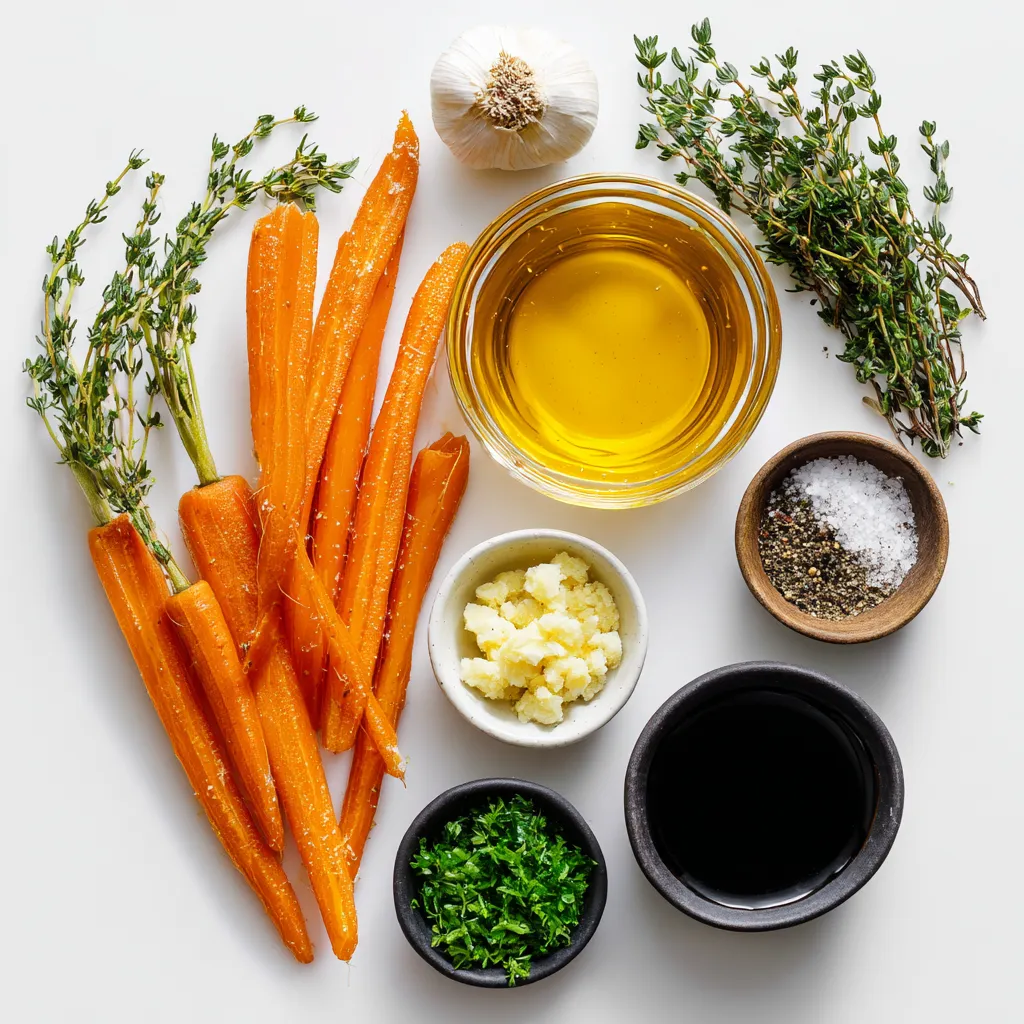 Hauptzutaten für Honig-Knoblauch-Röstkarotten