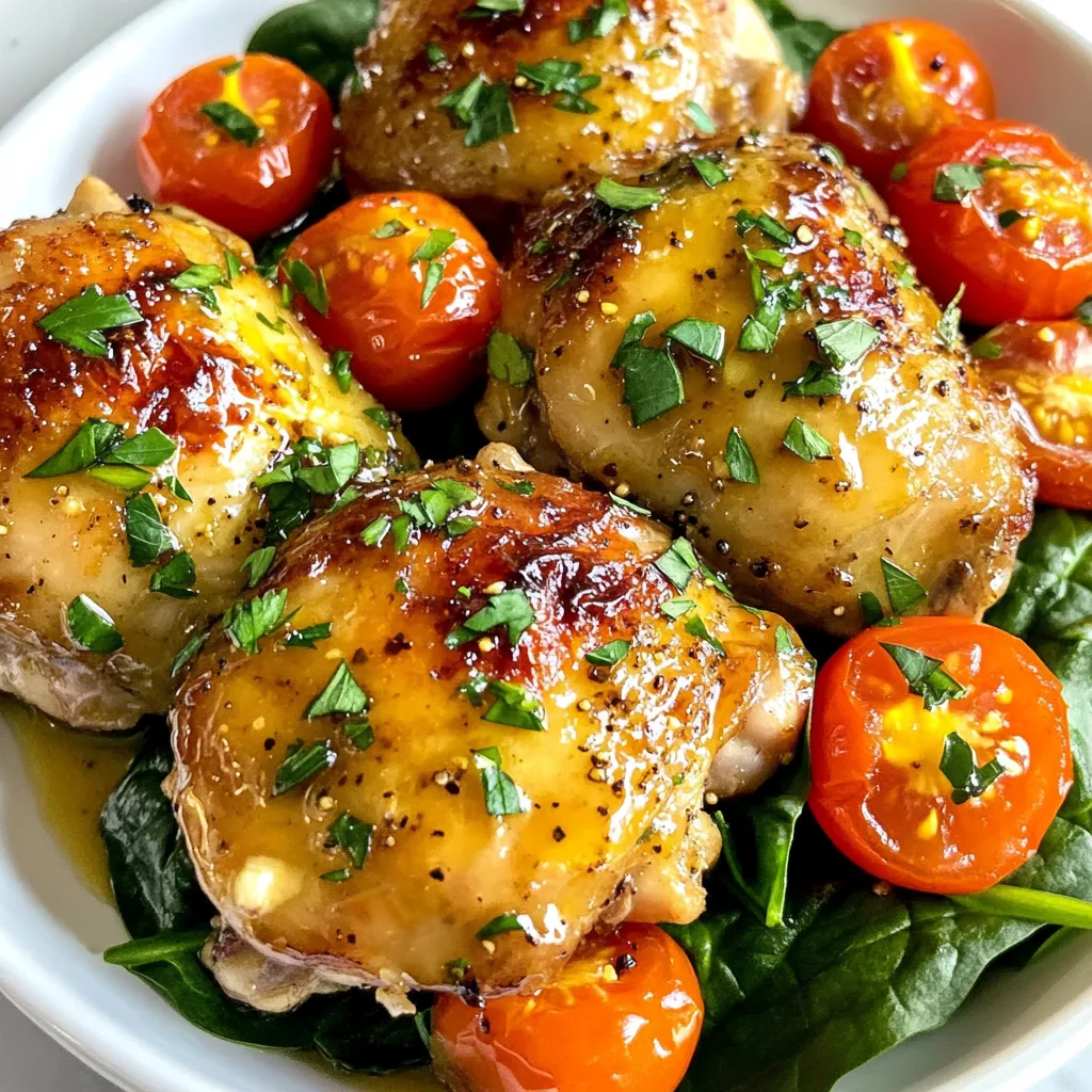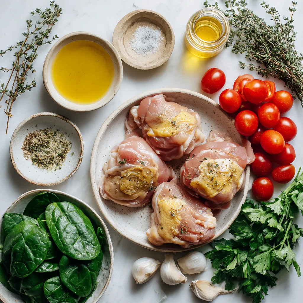 – Gemüse und Gewürze: Füge 1 Tasse halbierte Kirschtomaten und 1 Tasse frischen Spinat hinzu. Diese Gemüse sorgen für Farbe und Nährstoffe. Verwende auch 2 Knoblauchzehen, 1 Teelöffel getrockneten Thymian, Salz und Pfeffer. Diese Gewürze verstärken den Geschmack des Hähnchens und der Sauce.