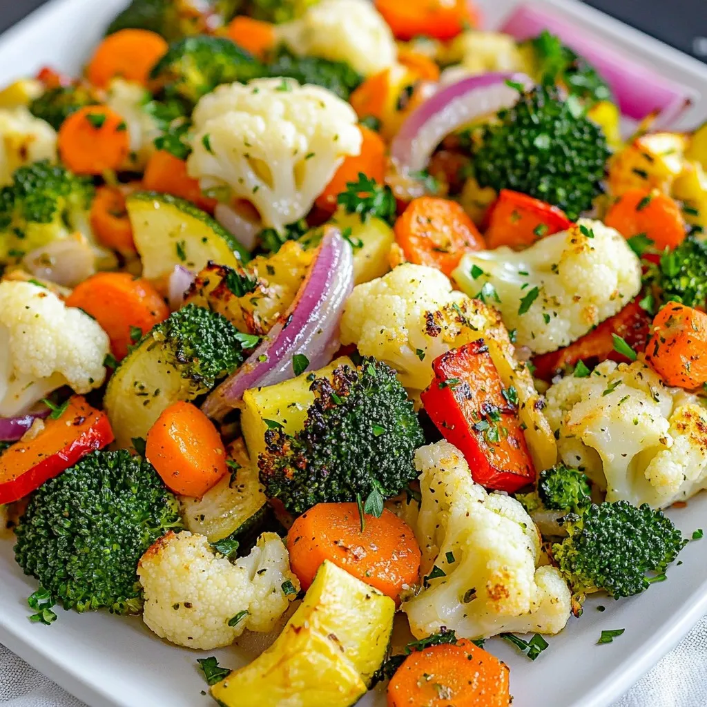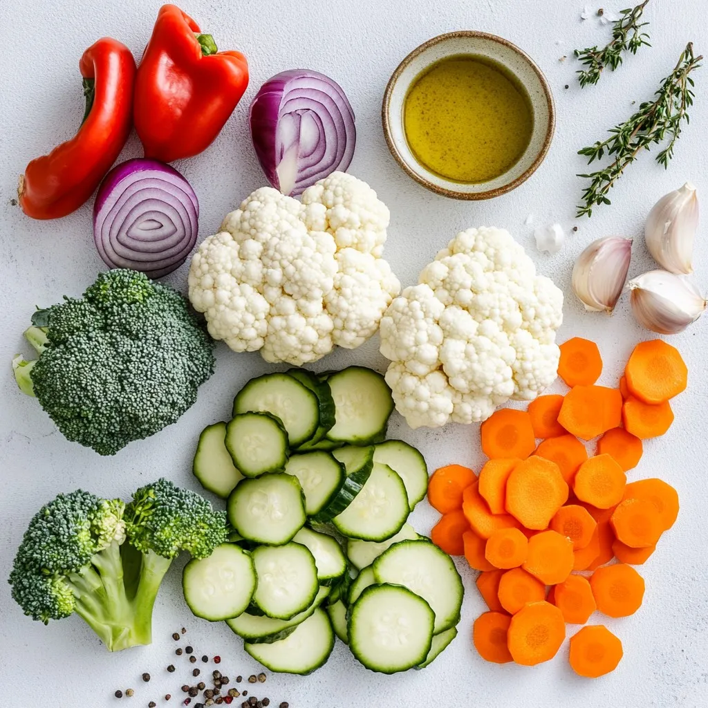 Für das Knoblauch Kräuter Röstgemüse Medley brauchen Sie: - 2 Tassen Brokkoliröschen - 1 Tasse Blumenkohlröschen - 1 Tasse Karotten, in Scheiben geschnitten - 1 rote Paprika, gewürfelt - 1 Zucchini, in Scheiben geschnitten - 1 rote Zwiebel, in Spalten geschnitten Diese Gemüse geben dem Gericht Farbe und Textur. Brokkoli und Blumenkohl sind knackig und gesund. Karotten bringen Süße, während Paprika Frische hinzufügt. Zucchini sorgt für eine zarte Konsistenz. Die rote Zwiebel gibt einen milden Zwiebelgeschmack. Für das perfekte Aroma benötigen Sie: - 5 Knoblauchzehen, fein gehackt - 3 Esslöffel Olivenöl - 1 Teelöffel getrockneter Thymian - 1 Teelöffel getrockneter Rosmarin - Salz und Pfeffer nach Geschmack Knoblauch ist der Star des Gerichts. Er sorgt für einen starken, herzhaften Geschmack. Olivenöl hilft beim Röstprozess und bringt gesunde Fette. Thymian und Rosmarin fügen Kräuternoten hinzu. Salz und Pfeffer runden die Aromen ab und machen das Gemüse schmackhaft. Wenn Sie möchten, können Sie das Gericht mit frischer Petersilie garnieren. - Frische Petersilie zum Garnieren Die Petersilie gibt einen frischen Farbklecks. Außerdem verstärkt sie den Geschmack. Es macht das Gericht noch ansprechender. Nehmen Sie Ihre Zeit beim Garnieren, denn das Auge isst mit! {{ingredient_image_2}} Erhitze deinen Ofen auf 220°C. Das sorgt für eine schöne Röstfarbe. Diese hohe Temperatur macht das Gemüse knusprig und lecker. Nimm eine große Schüssel und füge folgendes Gemüse hinzu: - 2 Tassen Brokkoliröschen - 1 Tasse Blumenkohlröschen - 1 Tasse Karotten, in Scheiben geschnitten - 1 rote Paprika, gewürfelt - 1 Zucchini, in Scheiben geschnitten - 1 rote Zwiebel, in Spalten geschnitten Mische das Gemüse gut. So verteilen sich die Aromen gleichmäßig. In einer kleinen Schüssel vermische: - 5 Knoblauchzehen, fein gehackt - 3 Esslöffel Olivenöl - 1 Teelöffel getrockneter Thymian - 1 Teelöffel getrockneter Rosmarin - Salz und Pfeffer nach Geschmack Rühre alles zusammen, bis es gut vermischt ist. Diese Mischung gibt dem Gemüse tollen Geschmack. Gieße die Knoblauch-Kräuter-Mischung über das Gemüse. Werfe alles vorsichtig um, bis das Gemüse gleichmäßig überzogen ist. Lege das Gemüse in einer Schicht auf ein Backblech mit Backpapier. Röste das Gemüse für 25-30 Minuten. Rühre es einmal um, um eine gleichmäßige Röstung zu erreichen. Nach dem Rösten lasse das Gemüse kurz abkühlen. Serviere es warm und garniere es mit frischer Petersilie, wenn du magst. Die Röstzeiten sind wichtig, um das Gemüse perfekt zuzubereiten. Hier sind einige Tipps: - Brokkoli und Blumenkohl brauchen etwa 25-30 Minuten. - Karotten und Zucchini rösten auch in dieser Zeit. - Paprika und Zwiebeln können 20-25 Minuten rösten. - Überprüfen Sie das Gemüse nach der Hälfte der Zeit. Rühren Sie es um, damit es gleichmäßig bräunt. Frische Kräuter bringen mehr Geschmack. Hier sind einige gute Optionen: - Petersilie passt gut und sieht toll aus. - Thymian und Rosmarin sind ideal für Röstgemüse. - Verwenden Sie bio-kontrollierte Kräuter, wenn möglich. - Kaufen Sie Kräuter, die frisch und grün sind. Das sorgt für einen besseren Geschmack. Einige Fehler können das Ergebnis ruinieren. Achten Sie auf Folgendes: - Überladen Sie das Backblech nicht. Das Gemüse braucht Platz zum Rösten. - Nutzen Sie Backpapier, um ein Ankleben zu verhindern. - Lassen Sie das Gemüse nicht zu lange im Ofen. Es kann anbrennen. - Vergessen Sie nicht, das Gemüse während des Röstens umzurühren. So wird es gleichmäßig gar. Pro Tipps Gemüse gleichmäßig schneiden: Achten Sie darauf, dass alle Gemüsestücke gleichmäßig groß sind, damit sie gleichmäßig garen und rösten. Öl nicht sparen: Verwenden Sie ausreichend Olivenöl, um das Gemüse gut zu beschichten. Dies fördert eine schöne Karamellisierung und verhindert, dass das Gemüse austrocknet. Variieren Sie die Gewürze: Experimentieren Sie mit verschiedenen Kräutern und Gewürzen, um dem Gericht eine persönliche Note zu verleihen. Frische Kräuter können ebenfalls verwendet werden. Röstdauer anpassen: Die Röstdauer kann je nach Ofen variieren. Behalten Sie das Gemüse im Auge und rühren Sie es regelmäßig um, um eine gleichmäßige Bräunung zu erreichen. {{image_4}} Sie können viele verschiedene Gemüsesorten für Ihr Röstgemüse verwenden. Brokkoli und Blumenkohl sind toll, aber probieren Sie auch grüne Bohnen oder Süßkartoffeln. Auch Auberginen und Spargel bringen einen neuen Geschmack. Mischungen machen das Gericht bunter und gesünder. Lassen Sie Ihrer Kreativität freien Lauf! Fügen Sie verschiedene Gewürze hinzu, um neue Aromen zu entdecken. Paprikapulver gibt eine süße Note. Kreuzkümmel sorgt für einen würzigen Kick. Wenn Sie es scharf mögen, können Sie auch etwas Cayennepfeffer verwenden. Experimentieren Sie mit frischen Kräutern wie Basilikum oder Koriander. Diese verleihen dem Gemüse einen frischen Geschmack. Möchten Sie das Gericht vegan halten? Fügen Sie Kichererbsen oder Linsen hinzu. Diese liefern viel Protein und machen das Gericht nahrhafter. Wenn Sie mehr Protein brauchen, probieren Sie Tofu oder Tempeh. Diese Optionen passen gut zu den Röstgemüsen und können leicht gewürzt werden. So haben Sie ein leckeres und gesundes Essen. Um dein Knoblauch Kräuter Röstgemüse frisch zu halten, lagere es in einem luftdichten Behälter. Das schützt das Gemüse vor Feuchtigkeit und Gerüchen. Achte darauf, dass das Gemüse vollständig abgekühlt ist, bevor du es verpackst. So bleibt es länger knackig und schmackhaft. Wenn du Röstgemüse aufwärmen möchtest, gibt es mehrere einfache Methoden. Du kannst es in der Mikrowelle erhitzen. Stelle die Mikrowelle auf eine mittlere Stufe ein und erwärme es für 1-2 Minuten. Eine andere tolle Option ist, das Gemüse in einer Pfanne mit etwas Olivenöl zu braten. So wird es wieder knusprig. Im Kühlschrank hält sich dein Röstgemüse etwa 3-5 Tage. Acht