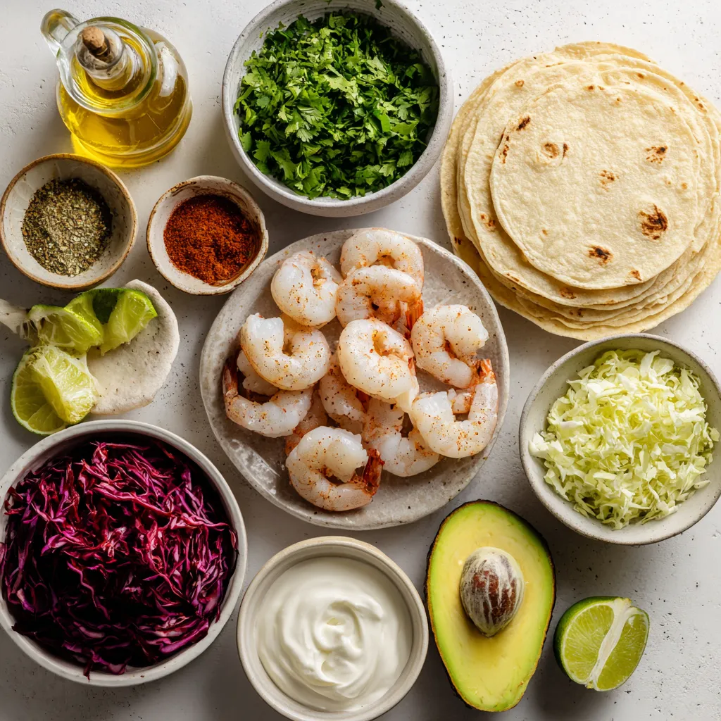 Hauptzutaten für Koriander-Limetten-Garnelen-Tacos