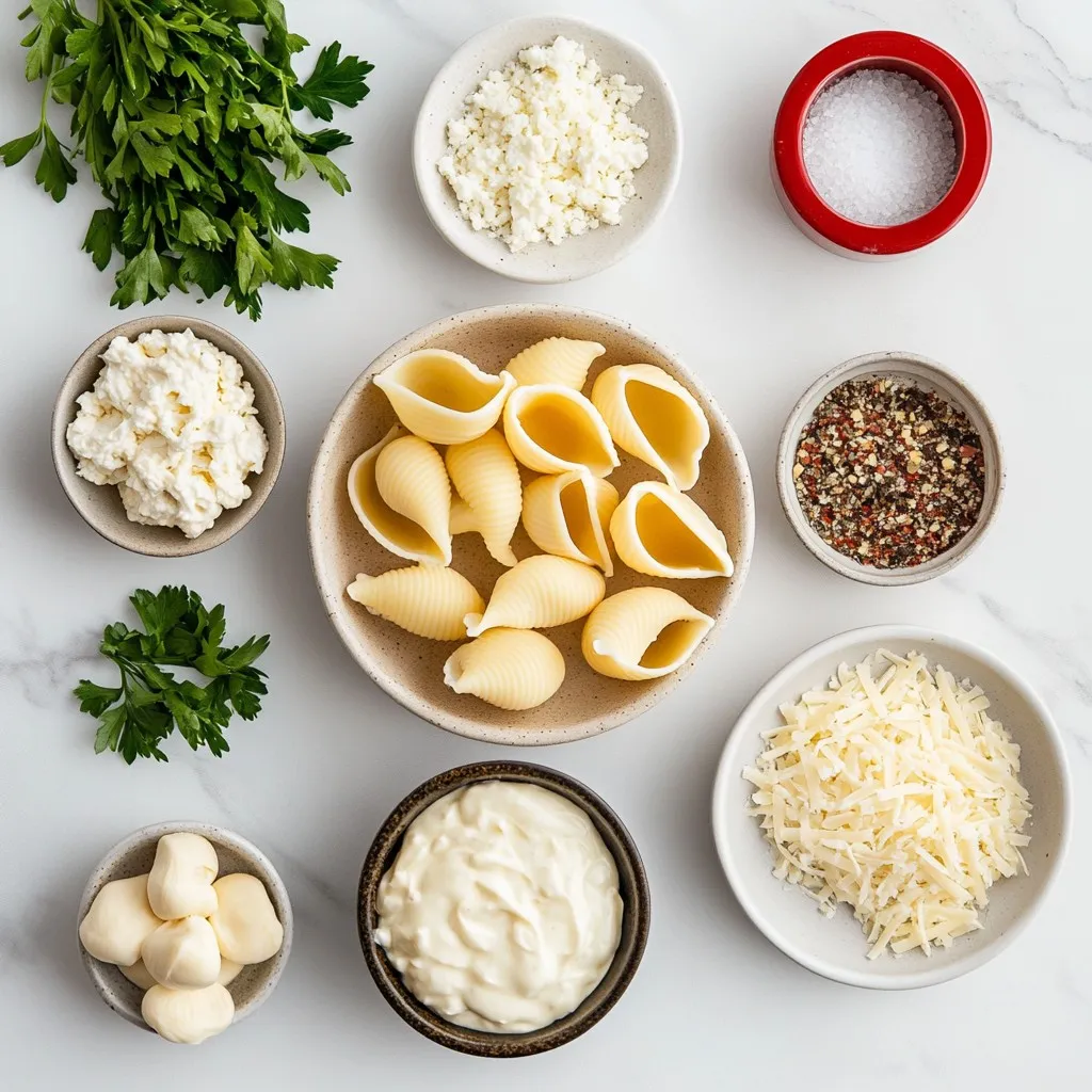 Hauptzutaten für Käse-Hühnchen-Alfredo gefüllte Muscheln