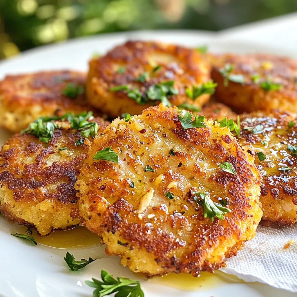 Jetzt formst du die Mischung in gleichmäßige Patties. Jedes Patty sollte etwa 5-7 cm im Durchmesser und 1,5 cm dick sein. Erhitze eine beschichtete Pfanne bei mittlerer Hitze. Gib einen Schuss Olivenöl in die Pfanne, sodass der Boden leicht bedeckt ist. Wenn das Öl heiß ist, lege die Patties vorsichtig in die Pfanne. Brate sie etwa 4-5 Minuten auf jeder Seite. Sie sollten goldbraun und knusprig werden. Wenn nötig, brate die Kekse in mehreren Durchgängen. Nimm die Kekse aus der Pfanne und lege sie auf einen Teller mit Küchenpapier. So saugst du überschüssiges Öl auf. Serviere die Kekse warm und garniere sie nach Belieben mit frischer Petersilie.