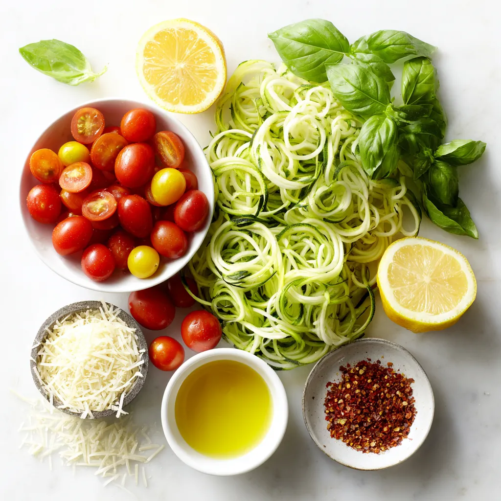 Die Hauptzutaten sind frisch und einfach zu finden. Zucchini bringen eine tolle Textur und sind gesund. Die Kirschtomaten fügen eine süße Note hinzu. Parmesan sorgt für einen herzhaften Geschmack. Zitronensaft bringt Frische.