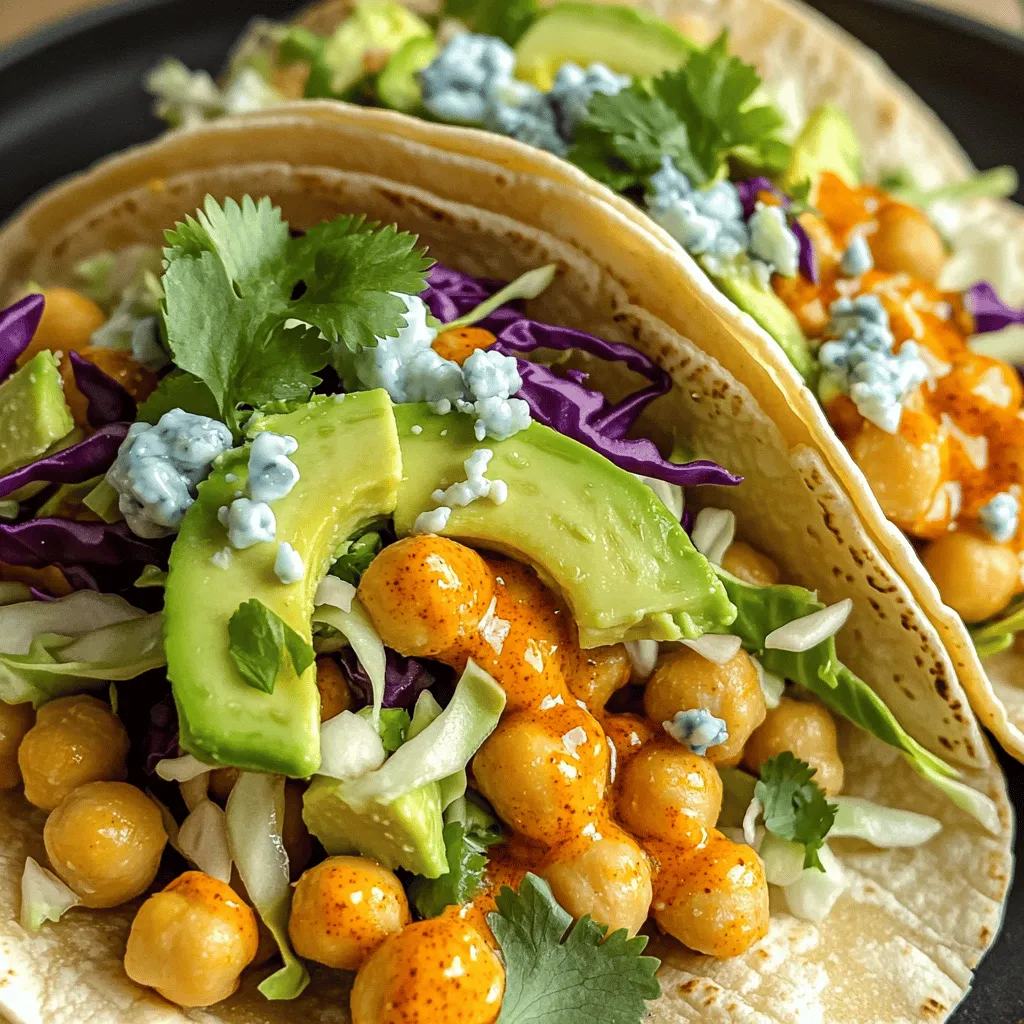 Die Buffalo-Sauce ist der Schlüssel zu diesem Rezept. Du kannst die Schärfe leicht anpassen. Füge mehr oder weniger Buffalo-Sauce hinzu, je nach Vorliebe. Knoblauchpulver und geräuchertes Paprikapulver geben den Kichererbsen mehr Tiefe. Experimentiere mit deinen Lieblingsgewürzen. Ein Hauch von Limette kann auch frischen Wind bringen. So wird jedes Taco einzigartig und lecker.