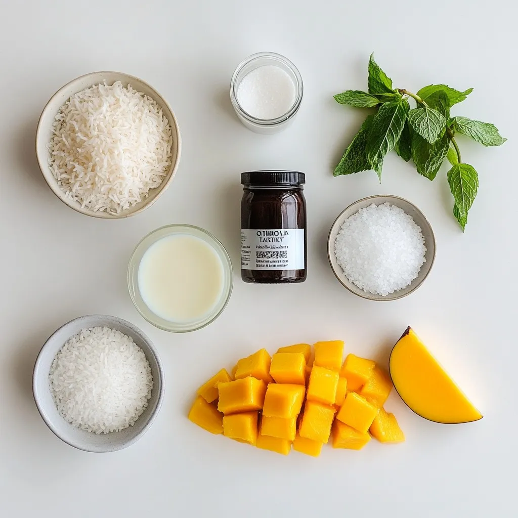 Die Hauptzutaten sind einfach und frisch. Jasminreis hat einen feinen Duft und eine weiche Textur. Kokosmilch gibt dem Pudding eine cremige Basis. Die reife Mango bringt eine süße Frische hinein.
