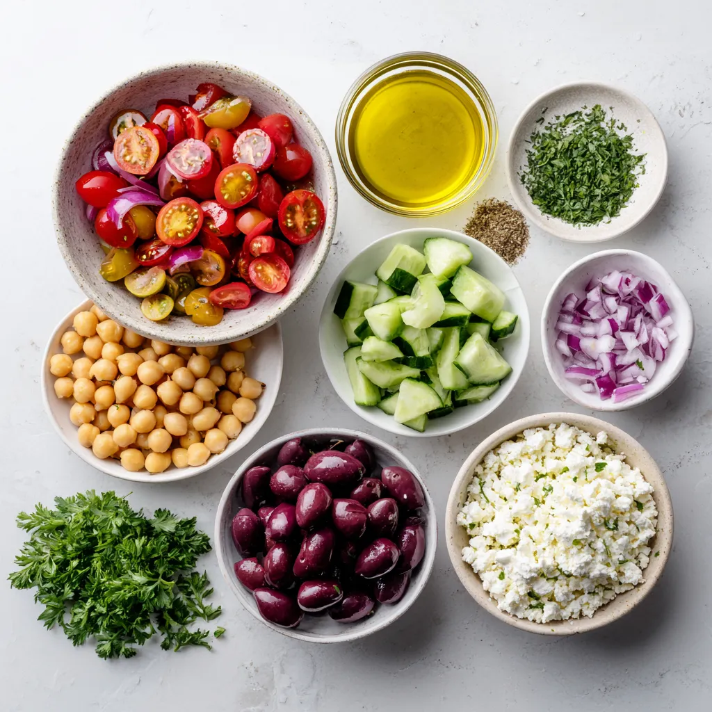 Hauptzutaten für den Mediterranen Kichererbsensalat