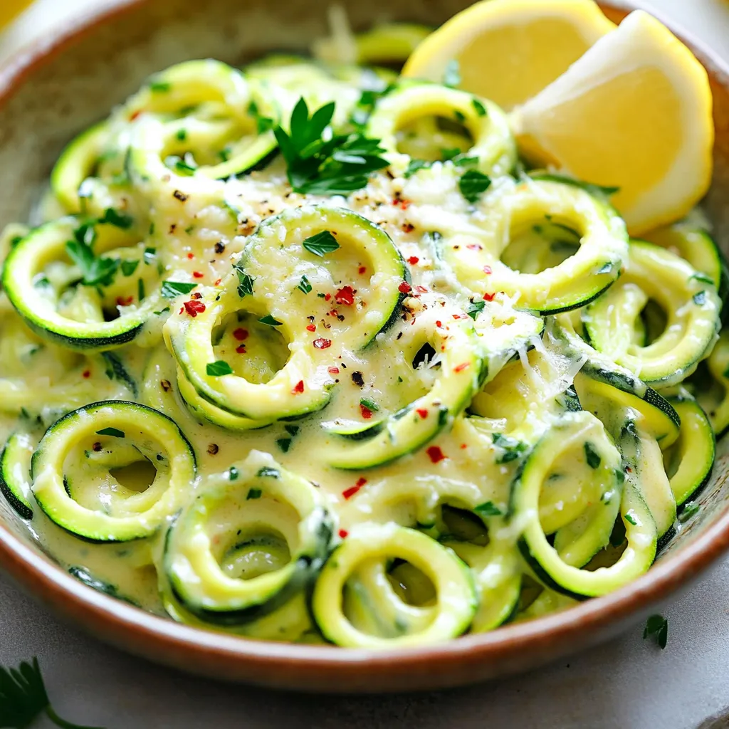 Die Präsentation macht viel aus. Richte die Zucchini-Nudeln in einer flachen Schüssel an. Bestreue sie mit extra Parmesan und frischer Petersilie. Das sorgt für einen schönen Kontrast. Füge Zitronenspalten hinzu, um einen frischen Akzent zu setzen. Die Farben und Texturen machen dein Gericht ansprechend und appetitlich. So wird deine Mahlzeit nicht nur lecker, sondern auch schön anzusehen.