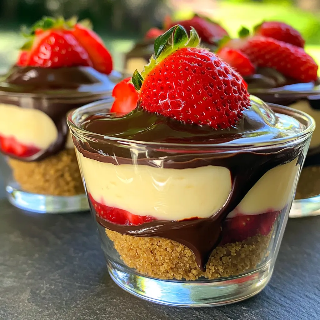 No-Bake Chocolate Covered Strawberry Cheesecake Cups