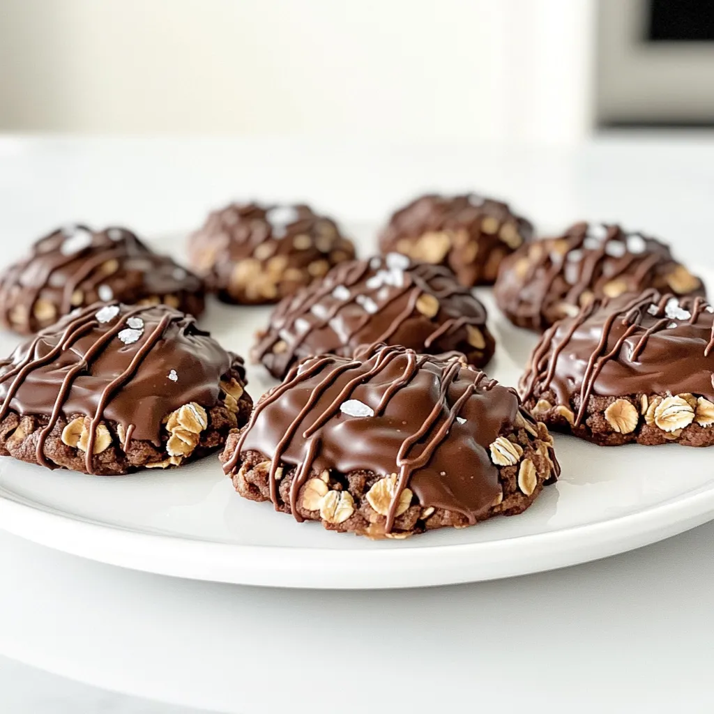Die Hauptzutaten sind einfach und leicht zu finden. Hier sind sie: - 250 g zarte Haferflocken - 125 g natürliche Erdnussbutter - 125 g Honig oder Ahornsirup - 40 g ungesüßtes Kakaopulver - 60 ml Kokosöl, geschmolzen - 1/4 Teelöffel Salz - 1 Teelöffel Vanilleextrakt Diese Zutaten geben den Keksen ihren tollen Geschmack und die perfekte Konsistenz. Die Haferflocken sorgen für den Biss und die Erdnussbutter für die Cremigkeit. Um die Kekse noch besser zu machen, kannst du einige optionale Zutaten hinzufügen: - 90 g Mini-Schokoladenstückchen - 30 g gehackte Nüsse (Walnüsse oder Mandeln) Diese Zutaten bringen mehr Crunch und süße Aromen in die Kekse. Die Schokoladenstückchen schmelzen leicht und machen die Kekse extra lecker. Gute Zutaten machen den Unterschied. Hier sind ein paar Tipps: - Wähle natürliche Erdnussbutter ohne Zuckerzusatz. So bleibt der Geschmack rein. - Achte darauf, ungesüßtes Kakaopulver zu nehmen. So kontrollierst du die Süße besser. - Kaufe frische Haferflocken, um die beste Textur zu erzielen. Wenn du diese einfachen Tipps befolgst, wirst du großartige Kekse zaubern. Zuerst nimmst du einen mittelgroßen Topf. Erhitze ihn bei niedriger Hitze. Gib die Erdnussbutter, den Honig oder Ahornsirup und das geschmolzene Kokosöl hinein. Füge auch das ungesüßte Kakaopulver und das Salz hinzu. Rühre die Mischung gut um. Halte sie auf dem Herd für etwa 2 bis 3 Minuten. Die Mischung sollte glatt und gut vermischt sein. Nimm eine große Rührschüssel. Gib die zarten Haferflocken hinein. Jetzt kommt die Schokoladenmischung dazu. Gieße sie über die Haferflocken. Rühre alles gut um. Stelle sicher, dass alle Haferflocken gut beschichtet sind. Wenn du magst, füge die Mini-Schokoladenstückchen und die gehackten Nüsse hinzu. Rühre noch einmal, um alles zu vermischen. Jetzt ist es Zeit zum Portionieren. Nimm einen Esslöffel oder einen Keksgreifer. Forme kleine Portionen der Mischung und lege sie auf ein Blech mit Backpapier. Drücke die Kekse leicht mit der Rückseite des Löffels an. So bekommen sie die klassische Keksform. Stelle das Blech für mindestens 30 Minuten in den Kühlschrank. So werden die Kekse fest und lecker. Ein häufiger Fehler ist, die Mischung zu heiß zu machen. Halte die Hitze immer niedrig. So vermeidest du, dass die Erdnussbutter brennt. Ein weiterer Fehler ist das Messen der Zutaten. Nutze eine digitale Waage für genaues Messen. Auch das Kühlen ist wichtig. Lass die Kekse mindestens 30 Minuten im Kühlschrank stehen, damit sie fest werden. Für die perfekte Konsistenz ist es wichtig, die Haferflocken gut mit der Schokoladenmischung zu vermengen. Rühre gründlich, bis alle Haferflocken gleichmäßig beschichtet sind. Wenn die Mischung zu trocken ist, füge etwas mehr Kokosöl hinzu. Ist sie zu feucht, kannst du mehr Haferflocken einrühren. So bekommst du die ideale Textur. Du kannst die Kekse auf einem schönen Teller anrichten. Beträufle sie mit geschmolzener Schokolade für einen extra Kick. Ein Hauch von Meersalz oben drauf gibt einen spannenden Geschmack. Zudem kannst du die Kekse mit frischen Früchten oder einer Kugel Eis servieren. So wird dein Dessert besonders lecker und ansprechend. {{image_4}} Erdnussbutter ist lecker, aber du kannst auch andere Nussbutter verwenden. Mandeln oder Cashews sind tolle Alternativen. Sie geben einen anderen Geschmack und sind oft milder. Du kannst auch Sonnenblumenbutter verwenden, wenn du Nüsse vermeiden musst. Diese Optionen machen die Kekse einzigartig. Anstelle von Honig oder Ahornsirup kannst du Zucker verwenden. Brauner Zucker gibt den Keksen einen tiefen, karamelligen Geschmack. Kokosblütenzucker ist eine gesunde Wahl und hat einen milden Geschmack. Wenn du es weniger süß magst, probiere Stevia oder Erythrit. Diese Süßstoffe haben weniger Kalorien und sind gut für Diäten. Die Kekse sind schon toll, aber du kannst sie noch verbessern. Füge getrocknete Früchte wie Cranberries oder Rosinen hinzu. Sie bringen Süße und einen fruchtigen Geschmack. Auch Kokosflocken sind eine gute Wahl. Sie sorgen für eine interessante Textur und einen tropischen Touch. Walnüsse oder Mandeln geben Crunch und Geschmack. Sei kreativ und finde deine Lieblingskombination! Um die No Bake Chocolate Oatmeal Cookies frisch zu halten, bewahre sie in einem luftdichten Behälter auf. Stelle den Behälter an einen kühlen, trockenen Ort. Vermeide direkte Sonne oder Wärmequellen. So bleiben die Kekse weich und lecker. Die Kekse halten sich etwa eine Woche bei Raumtemperatur. Wenn du sie im Kühlschrank lagerst, bleiben sie bis zu zwei Wochen frisch. Achte darauf, dass der Behälter gut verschlossen ist. So bleibt die Textur optimal. Wenn du die Kekse länger aufbewahren möchtest, friere sie ein. Lege sie in einen gefrierfesten Behälter oder in einen Gefrierbeutel. Achte darauf, die Kekse gut zu trennen, damit sie nicht zusammenkleben. Im Gefrierschrank halten sie bis zu drei Monate. Zum Auftauen kannst du die Kekse einfach bei Raumtemperatur liegen lassen. Ja, du kannst die Kekse glutenfrei machen. Suche nach glutenfreien Haferflocken. Achte darauf, dass sie als glutenfrei gekennzeichnet sind. Das ist wichtig, um eine Kontamination zu vermeiden. Diese kleinen Änderungen machen deine Kekse sicher für alle, die Gluten vermeiden müssen. Du kannst die Süße leicht anpassen. Wenn du es weniger süß magst, verwende weniger Honig oder Ahornsirup. Probiere auch verschiedene Süßungsmittel. Stevia oder Erythrit sind gute Alternativen. Fange mit kleinen Mengen an und teste den Geschmack. So findest du die perfekte Süße für deinen Gaumen. Wenn die Kekse nicht fest werden, kann das mehrere Gründe haben. Vielleicht hast du die Mischung nicht lange genug gekühlt. Stelle sicher, dass du sie mindestens 30 Minuten in den Kühlschrank stellst. Eine weitere Möglichkeit ist, mehr Haferflocken hinzuzufügen. Sie helfen, die Mischung zu binden. Mische gut und forme die Kekse erneut. No Bake Chocolate Oatmeal Cook