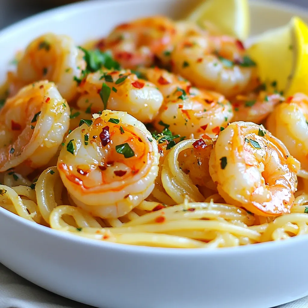 Ein köstliches und einfaches Gericht mit Garnelen, Spaghetti und aromatischen Zutaten, alles in einem Topf zubereitet.