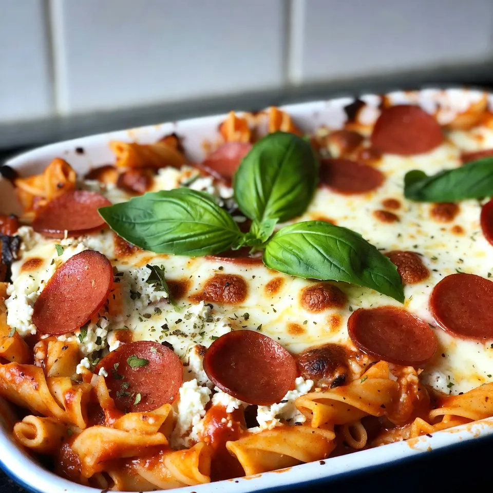 Ein köstlicher Auflauf mit Rotini-Pasta, Ricotta, Mozzarella und Peperoni.