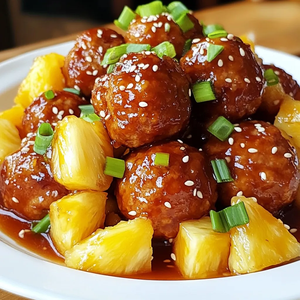 Leckere Fleischbällchen aus Hähnchen oder Truthahn, verfeinert mit Ananas und Teriyaki-Sauce.
