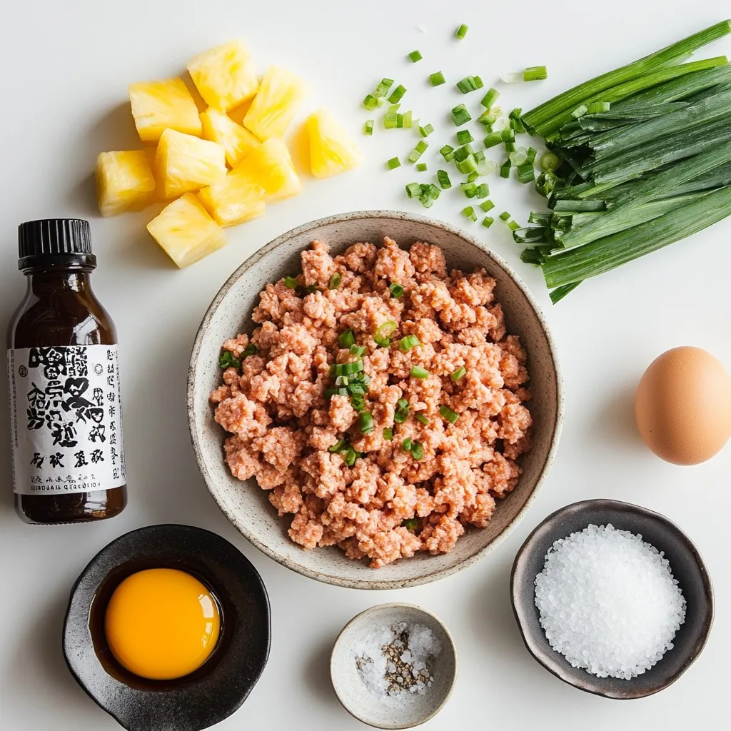Für die Hauptzutaten verwende ich gerne frisches Hähnchen. Das gibt den Fleischbällchen einen tollen Geschmack. Die Semmelbrösel helfen, die Mischung zu binden. Das Ei sorgt für eine schöne Textur. Die Ananasstücke fügen eine süße Note hinzu und passen perfekt zur Teriyaki-Sauce.