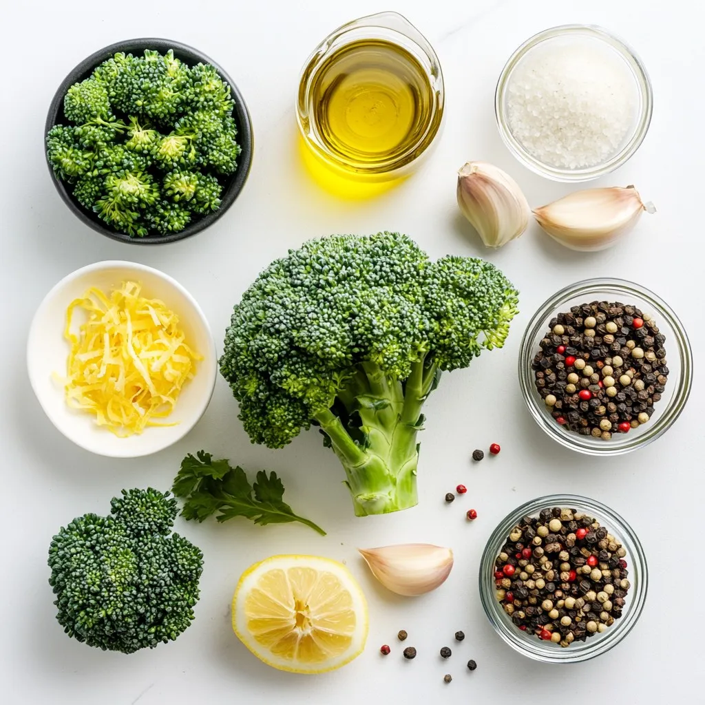 Die Hauptzutaten sind frisch und einfach zu finden. Brokkolifloren sind knackig und nahrhaft. Knoblauch bringt viel Geschmack. Parmesan sorgt für einen tollen Käsegeschmack. Diese Zutaten machen das Gericht besonders lecker.
