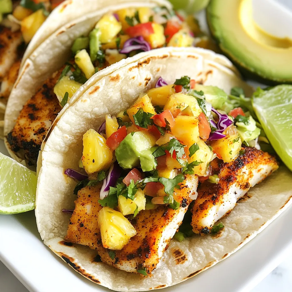 Leckere Tacos mit gewürztem Fisch und frischer Ananas-Salsa.