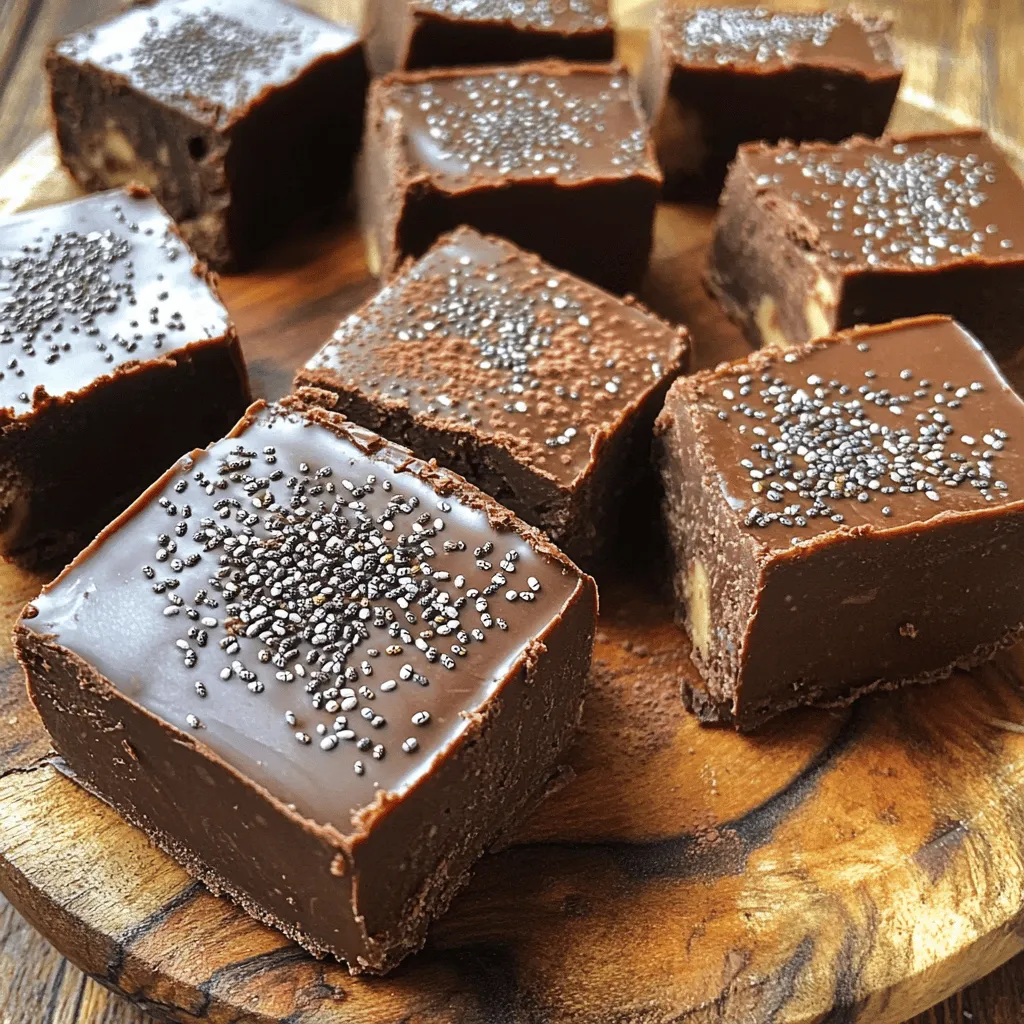 - Präsentationstipps: Arrangiere die Fudge-Quadrate auf einem dekorativen Teller und streue einige zusätzliche Chiasamen oder Kakaopulver obendrauf für das gewisse Etwas. Bewahre übrig gebliebene Stücke in einem luftdichten Behälter im Kühlschrank auf.
