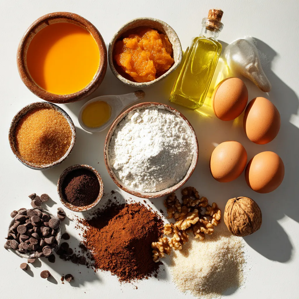 Hauptzutaten für das Kürbis-Schokoladen Genussbrot