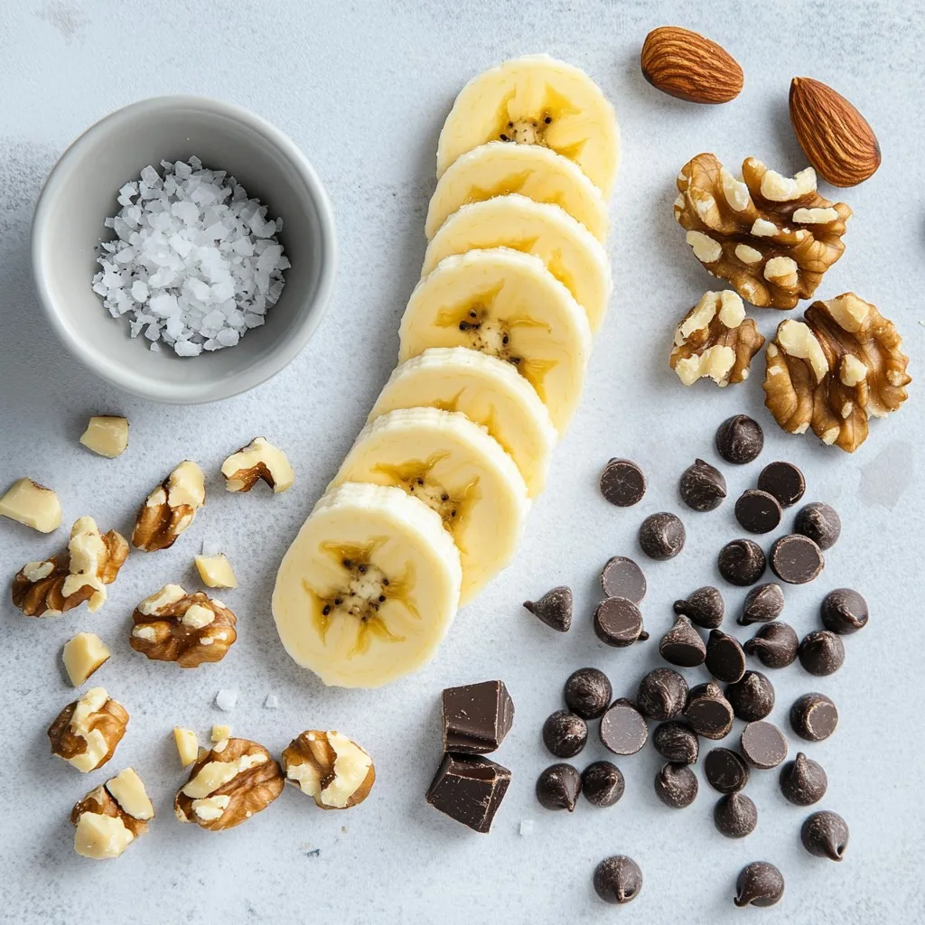 Für die schokoladenüberzogenen Bananenhäppchen brauchst du folgende Hauptzutaten: - 2 reife Bananen, in 2,5 cm dicke Scheiben geschnitten - 1 Tasse Zartbitter-Schokoladenstückchen (oder Milchschokolade, je nach Vorliebe) - 1 Esslöffel Kokosöl (optional, für eine cremigere Schmelze) Diese Zutaten bilden die Basis für dein Rezept. Die Bananen geben dir eine süße und fruchtige Note. Die Schokolade sorgt für den leckeren, schokoladigen Geschmack. Um deine Bananenhäppchen noch besser zu machen, kannst du folgende Zutaten hinzufügen: - 1/4 Tasse gehackte Nüsse (z.B. Mandeln, Walnüsse oder Erdnüsse) - Meersalz, zum Bestreuen (optional) - Zahnstochern oder Eisstielen Diese Zutaten bringen mehr Textur und Geschmack. Die Nüsse sorgen für einen knackigen Biss. Ein Hauch von Meersalz hebt die Süße der Schokolade hervor. Wenn du andere Geschmäcker ausprobieren willst, gibt es viele Optionen: - Weiße Schokolade für eine süßere Variante - Milchschokolade für eine cremigere Textur - Vegane Schokolade für eine pflanzliche Option Jede Schokoladenart bringt ihren eigenen Charakter in die Bananenhäppchen. Probiere verschiedene Sorten aus und finde deinen Favoriten! {{ingredient_image_2}} Beginne mit der Vorbereitung des Backblechs. Lege ein Backblech mit Backpapier aus. Dieses Papier verhindert das Ankleben der Bananenhäppchen. So bleibt der Genuss ganz einfach. Stelle das Blech an einen Ort, wo du gut arbeiten kannst. Jetzt ist es Zeit für die Bananen. Schneide zwei reife Bananen in 2,5 cm dicke Scheiben. Achte darauf, dass die Scheiben gleichmäßig sind. So sehen die Häppchen schön aus. Wenn du es magst, stecke einen Zahnstocher oder Eisstiel in die Mitte jeder Scheibe. Das macht das Eintauchen leichter und weniger schmutzig. Für die Schokolade brauchst du Zartbitter-Schokoladenstückchen. Du kannst auch Milchschokolade nehmen, wenn du das magst. Gib die Schokolade und das Kokosöl in eine mikrowellengeeignete Schüssel. Erhitze die Mischung in der Mikrowelle in 30-Sekunden-Intervallen. Rühre nach jedem Intervall um. So wird die Schokolade glatt und gleichmäßig. Nimm eine Bananenscheibe und tauche sie in die geschmolzene Schokolade. Stelle sicher, dass sie gut überzogen ist. Halte den Zahnstocher oder Stiel während des Eintauchens fest. Leg die überzogenen Bananenhäppchen zurück auf das Backblech. Streue sofort die gehackten Nüsse darauf. Wenn du magst, füge auch eine Prise Meersalz hinzu. Sobald alle Scheiben fertig sind, stelle das Blech für etwa 30 Minuten in den Gefrierschrank. So wird die Schokolade fest. Nach dem Einfrieren kannst du die Bananenhäppchen genießen. Sie sind einfach köstlich und machen glücklich! Um die perfekte Schokoladenschicht zu erreichen, achte darauf, die Schokolade richtig zu schmelzen. Ich empfehle, die Schokoladenstückchen in einer mikrowellengeeigneten Schüssel zu erhitzen. Stelle die Mikrowelle auf 30 Sekunden ein. Rühre nach jeder Runde gut um. So wird die Schokolade gleichmäßig flüssig und glänzend. Vermeide hohe Temperaturen, sonst brennt die Schokolade an. Die Verwendung von Zahnstocher oder Eisstielen macht das Eintauchen einfacher. Stecke einen Zahnstocher oder einen Eisstiel in die Mitte jeder Bananenscheibe. So kannst du die Bananen sicher halten, während du sie in die Schokolade tauchst. Außerdem sieht es gut aus und macht das Essen einfacher. Um eine cremigere Schokolade zu bekommen, füge etwas Kokosöl hinzu. Ein Esslöffel reicht aus. Das Öl hilft, die Schokolade geschmeidiger zu machen. Du kannst auch andere Öle verwenden, aber Kokosöl passt gut zu den Bananen. Wenn du es noch cremiger magst, probiere Zartbitter- oder Milchschokolade. Beide Sorten schmelzen gut und haben einen tollen Geschmack. Pro Tipps Wählen Sie reife Bananen: Je reifer die Bananen, desto süßer und schmackhafter sind die Häppchen. Sie sollten leicht braune Flecken auf der Schale haben. Kokosöl für Cremigkeit: Das Hinzufügen von Kokosöl zur Schokolade sorgt für eine glattere Konsistenz und erleichtert das Eintauchen der Bananen. Experimentieren mit Toppings: Probieren Sie verschiedene Nüsse oder sogar Kokosraspeln oder Streusel als Topping für mehr Abwechslung und Geschmack! Aufbewahrungstipps: Lagern Sie die schokoladenüberzogenen Bananenhäppchen in einem luftdichten Behälter im Kühlschrank, um ihre Frische zu bewahren. {{image_4}} Nüsse bringen einen tollen Crunch. Sie geben den Bananenhäppchen einen neuen Geschmack. Ich empfehle dir, gehackte Mandeln, Walnüsse oder Erdnüsse zu verwenden. Streue die Nüsse sofort nach dem Eintauchen in die Schokolade auf die Bananen. So bleibt alles gut haften. Wenn du magst, kannst du die Nüsse vorher leicht rösten. Das hebt den Geschmack noch mehr hervor. Es gibt viele Möglichkeiten, deine Bananenhäppchen zu verfeinern. Du kannst Kokosraspeln, bunte Streusel oder sogar geschmolzene weiße Schokolade verwenden. Eine andere Idee ist, die Häppchen mit etwas Zimt oder Muskatnuss zu bestreuen. Für einen extra Kick kannst du auch eine Prise Meersalz hinzufügen. Das salzige Aroma passt perfekt zur süßen Schokolade. Bananen sind klasse, aber du kannst auch andere Früchte verwenden. Erdbeeren, Ananas oder Apfelstücke sind tolle Alternativen. Achte darauf, dass die Früchte nicht zu saftig sind. Sie sollten gut in die Schokolade eintauchen können. Du kannst auch gefrorene Früchte verwenden. So entstehen erfrischende Snacks an heißen Tagen. Um die Bananenhäppchen frisch zu halten, lege sie in einen luftdichten Behälter. Achte darauf, dass die Schokolade nicht zerkratzt wird. Du kannst auch Backpapier zwischen die Häppchen legen. So bleiben sie schön und sehen toll aus. Im Kühlschrank halten die schokoladenüberzogenen Bananenhäppchen bis zu einer Woche. Im Gefrierfach bleiben sie sogar bis zu zwei Monate frisch. Der Geschmack bleibt toll, auch nach dem Einfrieren. Wenn du sie also länger aufbewahren möchtest, ist das Gefrierfach eine gute Wahl. Um die Häppchen ein