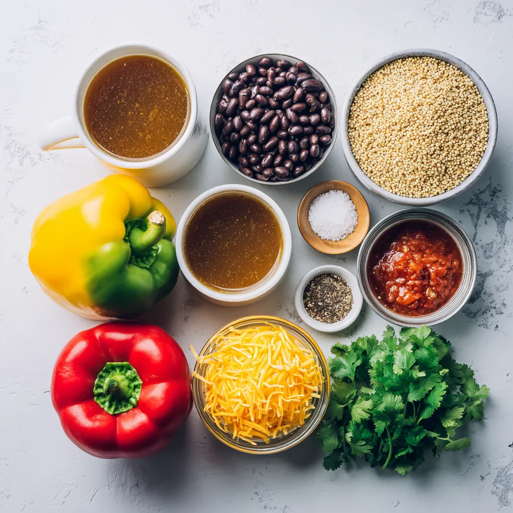 Für die sensationellen Southwest Quinoa gefüllten Paprikas brauchen Sie einige Hauptzutaten: