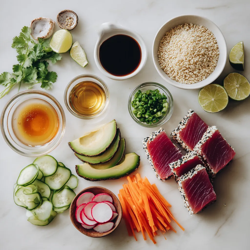 Hauptzutaten für die Sesame Crusted Ahi Tuna Bowls