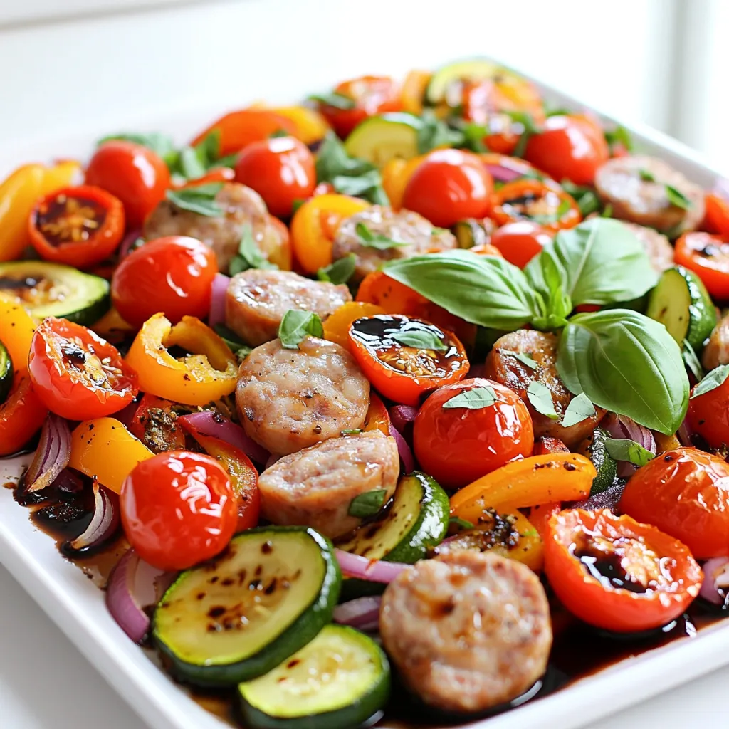Entdecken Sie das einfache und schmackhafte Rezept für Sheet Pan Balsamic Glazed Sausage Veggies! Dieses Gericht vereint zarte Hähnchenwürste und frisches Gemüse wie Paprika und Zucchini. Mit einer aromatischen Balsamico-Glasur aus italienischen Kräutern wird Ihr Abendessen zum Hit. Ideal für alle, die gesunde und schnelle Mahlzeiten schätzen. Lassen Sie uns direkt in die köstlichen Details eintauchen!