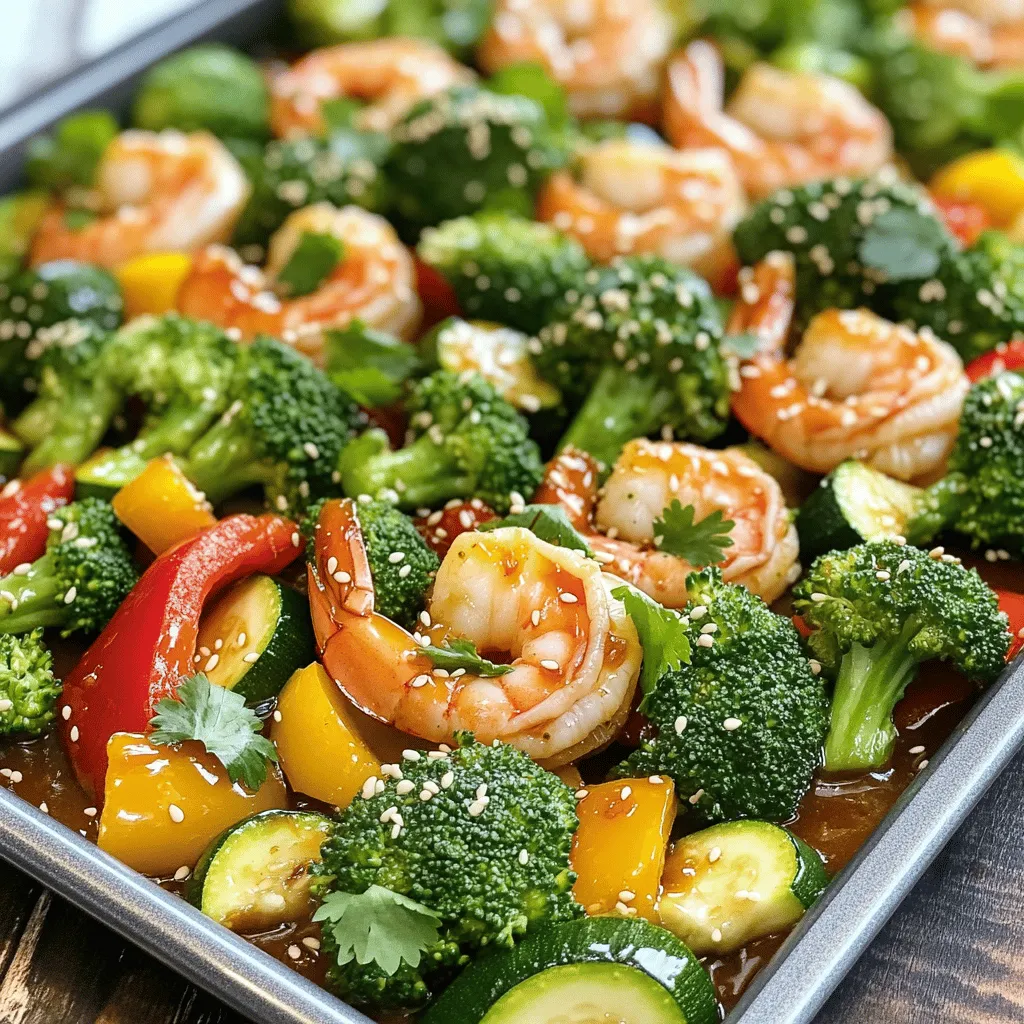 Die Hauptzutaten sind frisch und bunt. Große Garnelen geben viel Geschmack. Brokkoli bringt Knackigkeit. Paprika sorgt für Süße, und Zucchini fügt eine weiche Textur hinzu. Honig und Sriracha machen die Mischung süß und scharf. Diese Kombination macht das Gericht besonders lecker.