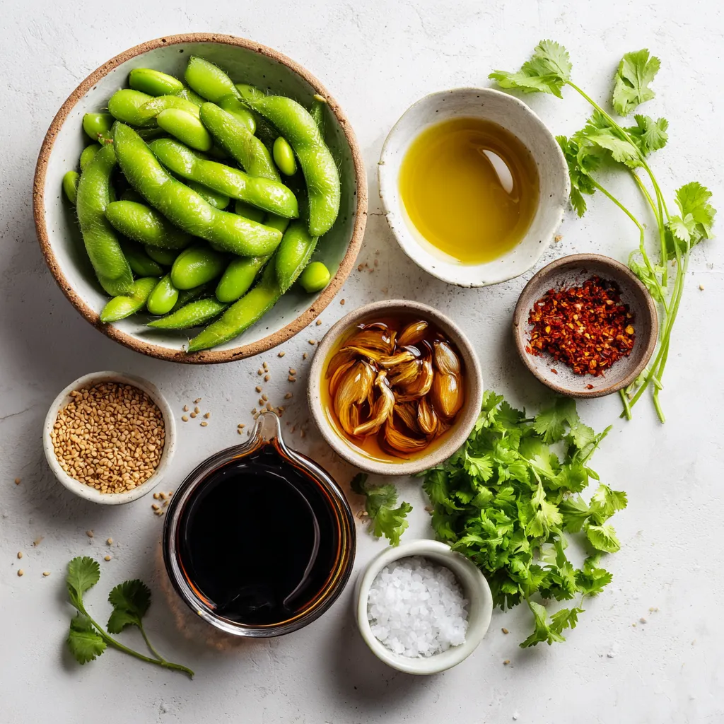 Hauptzutaten für Spicy Garlic Edamame