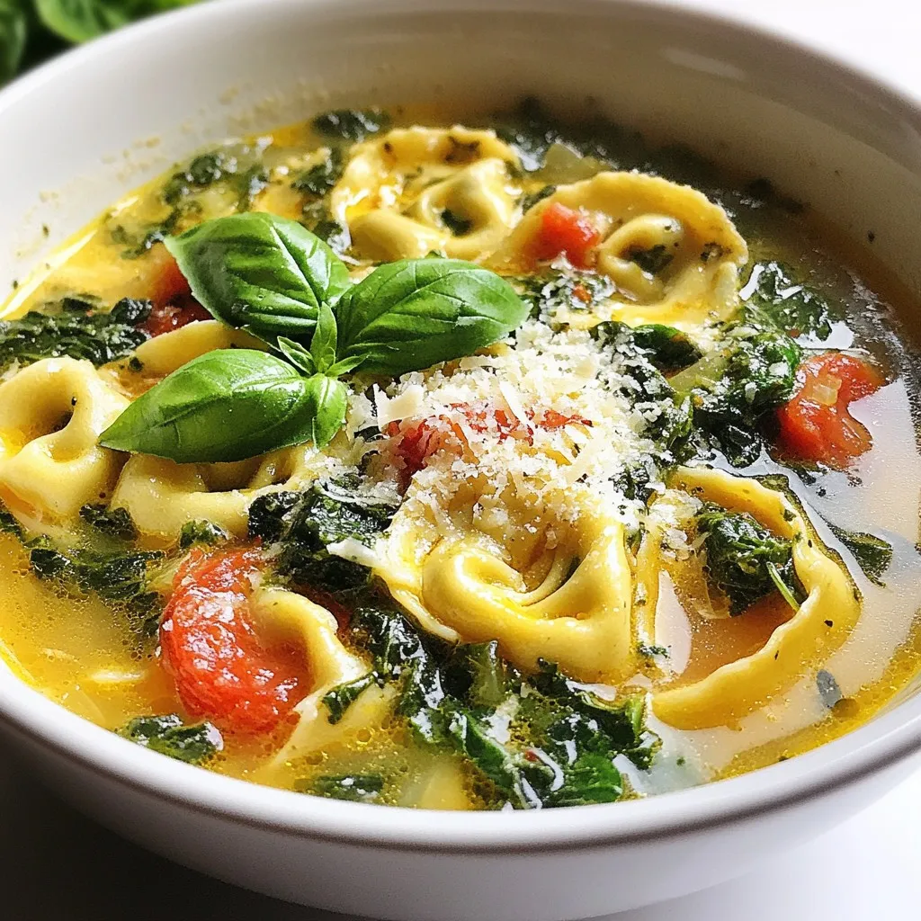 Eine köstliche und nahrhafte Suppe mit frischen Spinat-Tortellini und aromatischen Kräutern.