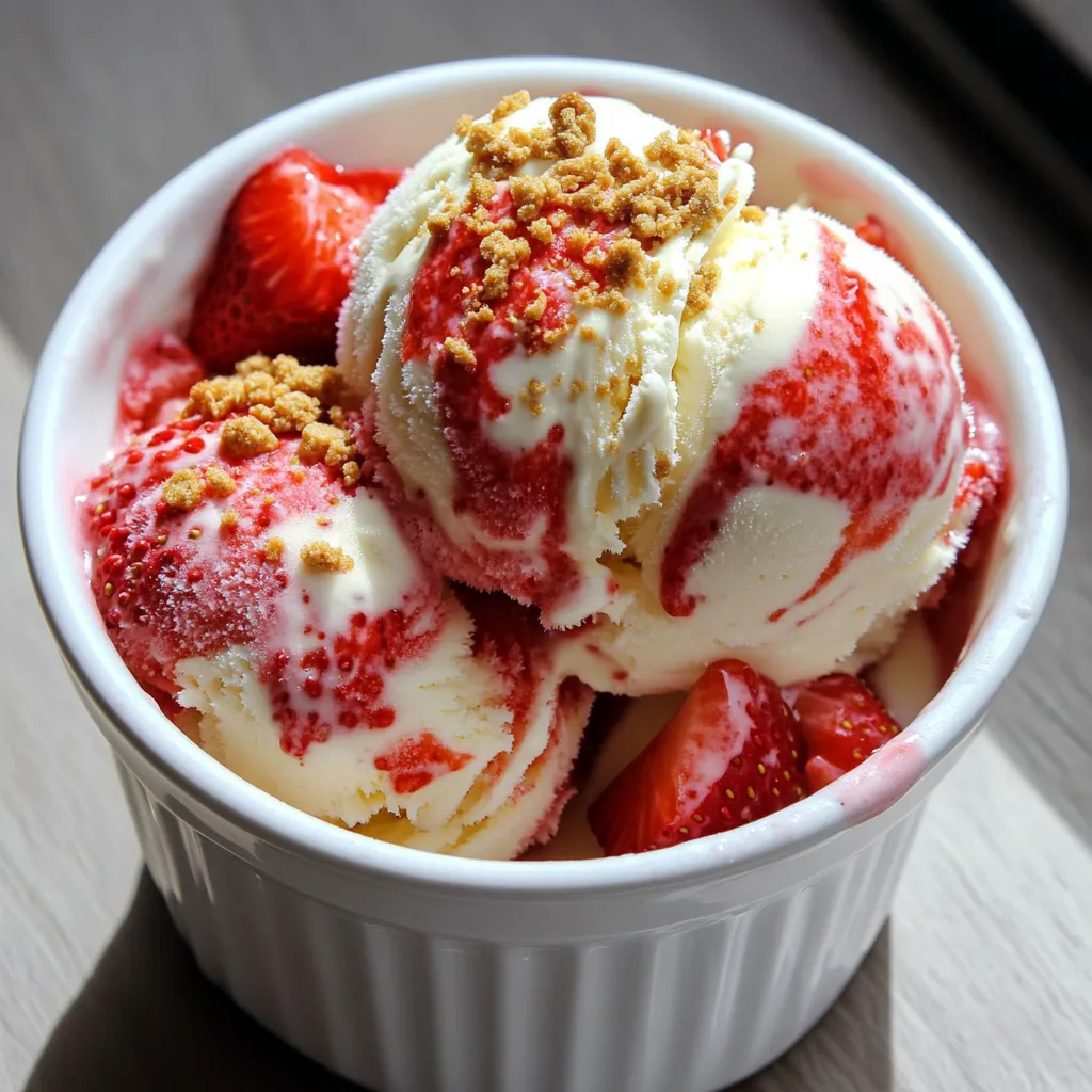 Toppings machen das Eis noch besser. Zerbröselte Graham-Cracker sind klassisch und lecker. Du kannst auch frische Erdbeeren oben drauf legen. Ein Spritzer Schokoladensauce bringt eine süße Note. Für einen besonderen Kick, probiere Minzblätter als Garnitur. Serviere das Eis in Waffeln oder hübschen Schalen. So sieht es nicht nur gut aus, sondern schmeckt auch besser!